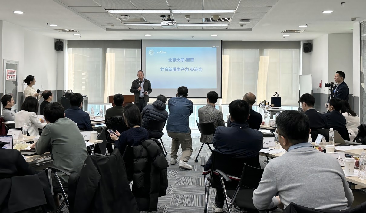 在交流研讨阶段,来自百度的行业专家先后介绍了飞桨深度学习技术创新与挑战、生物计算大模型赋能产业升级、大模型在医疗领域的应用探索,来自北大的学者代表分别围绕大模型、智能芯片、医工结合、新材料、碳中和与环境治理等介绍了相关研究进展及下一步合作愿景。