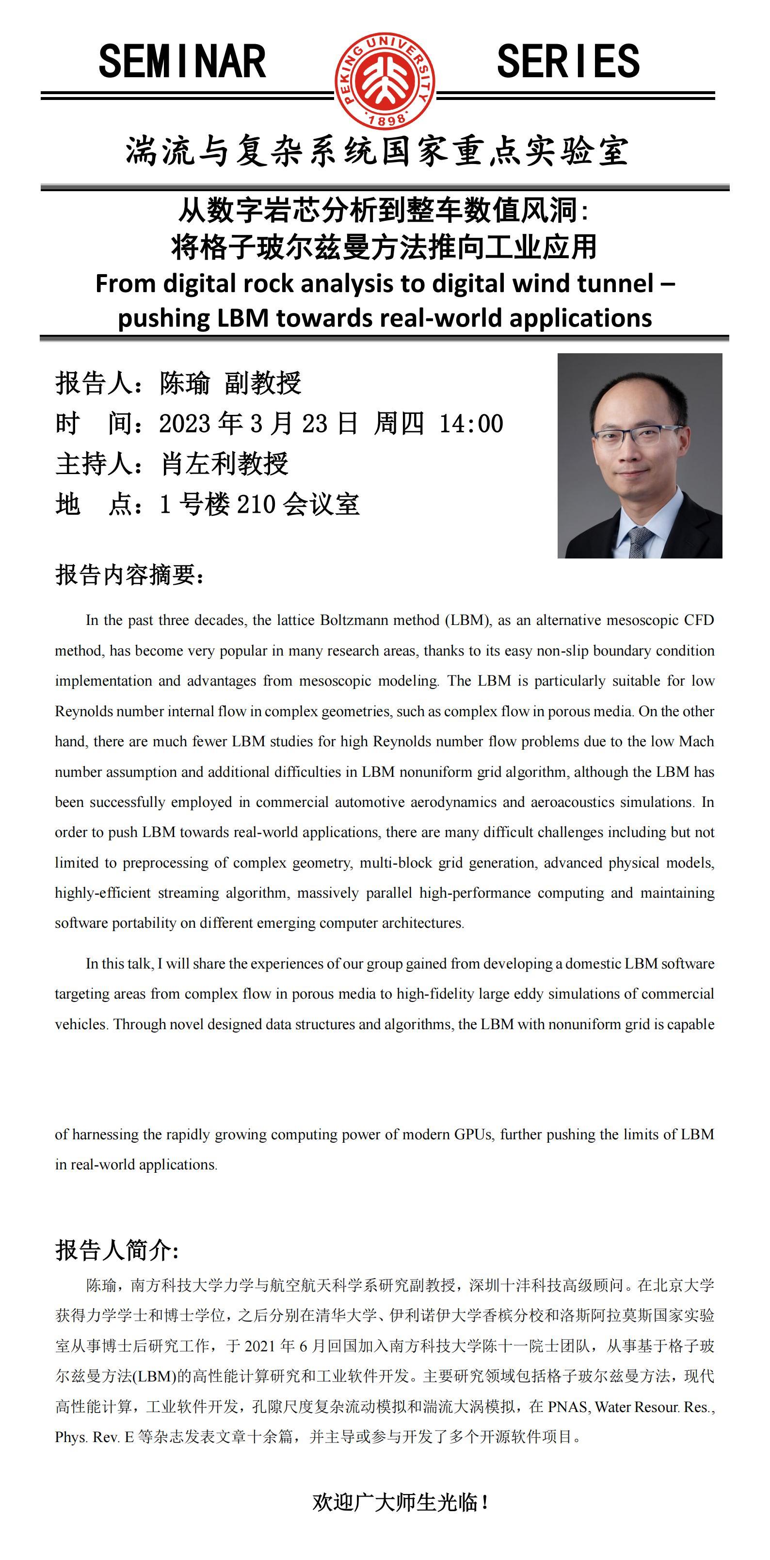 【学术报告】从数字岩芯分析到整车数值风洞:将格子玻尔兹曼方法推向工业应用