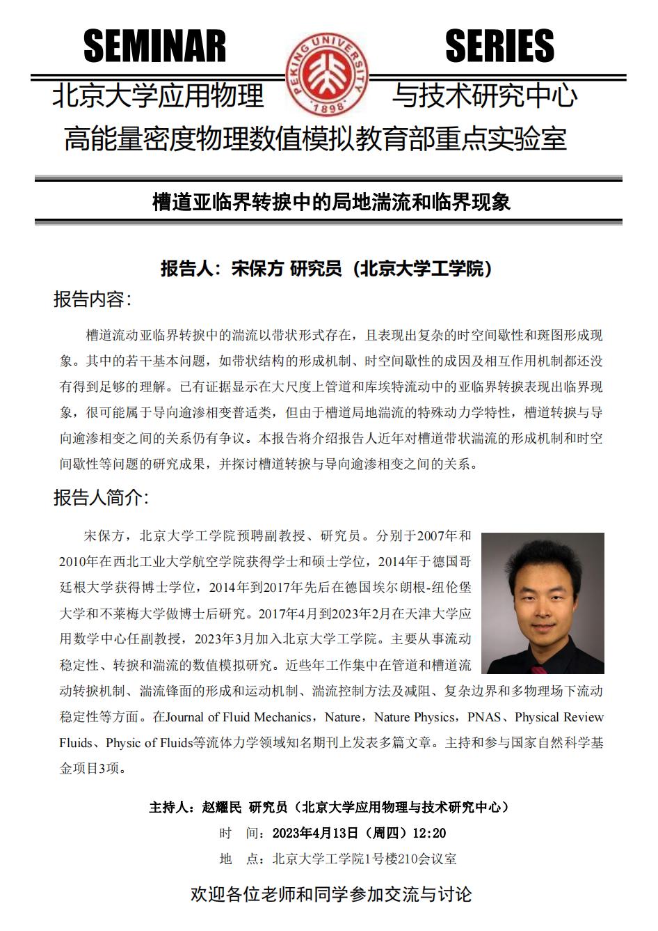 【学术报告】槽道亚临界转捩中的局地湍流和临界现象
