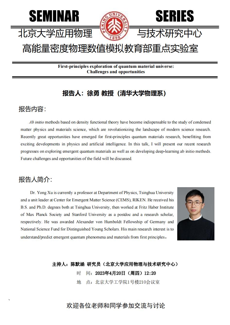 【学术报告】First-principles exploration of quantum material universe: Challenges and opportunities