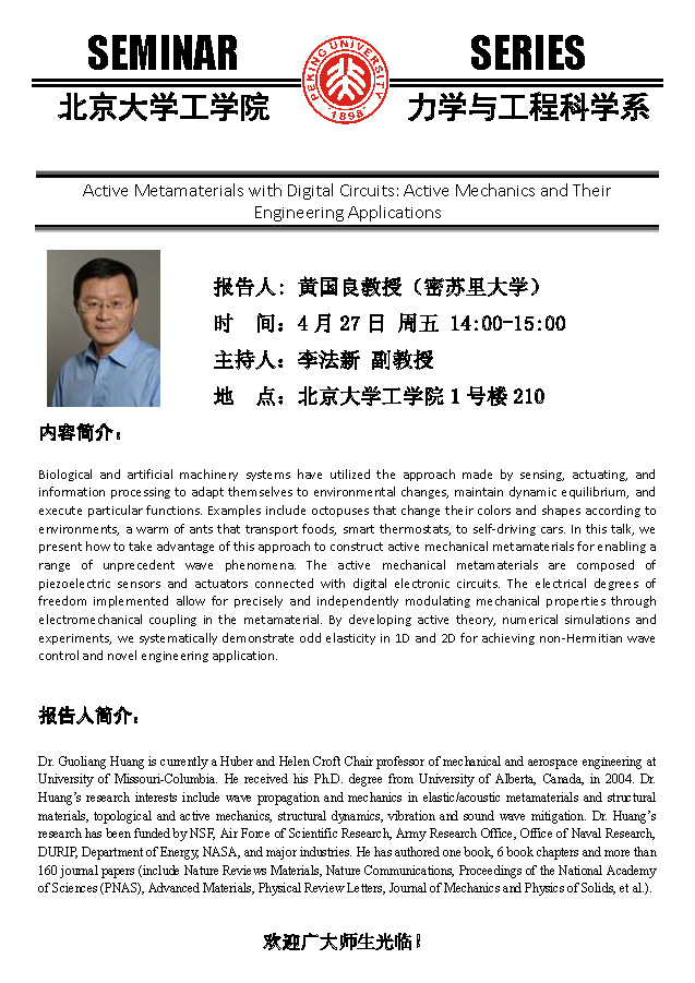 【学术报告】Active Metamaterials with Digital Circuits: Active Mechanics and Their Engineering Applications