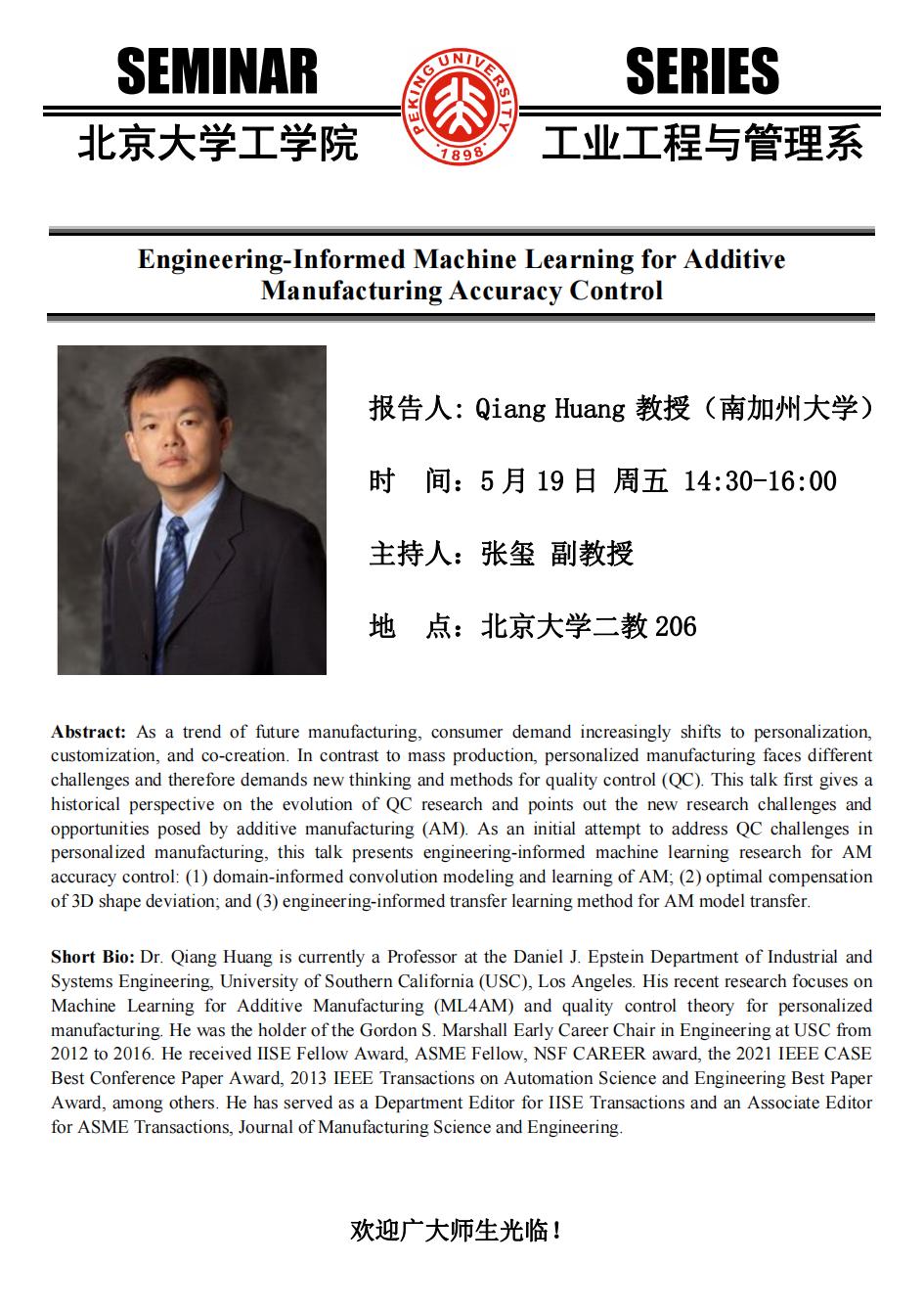 【学术报告】Engineering-Informed Machine Learning for Additive Manufacturing Accuracy Control
