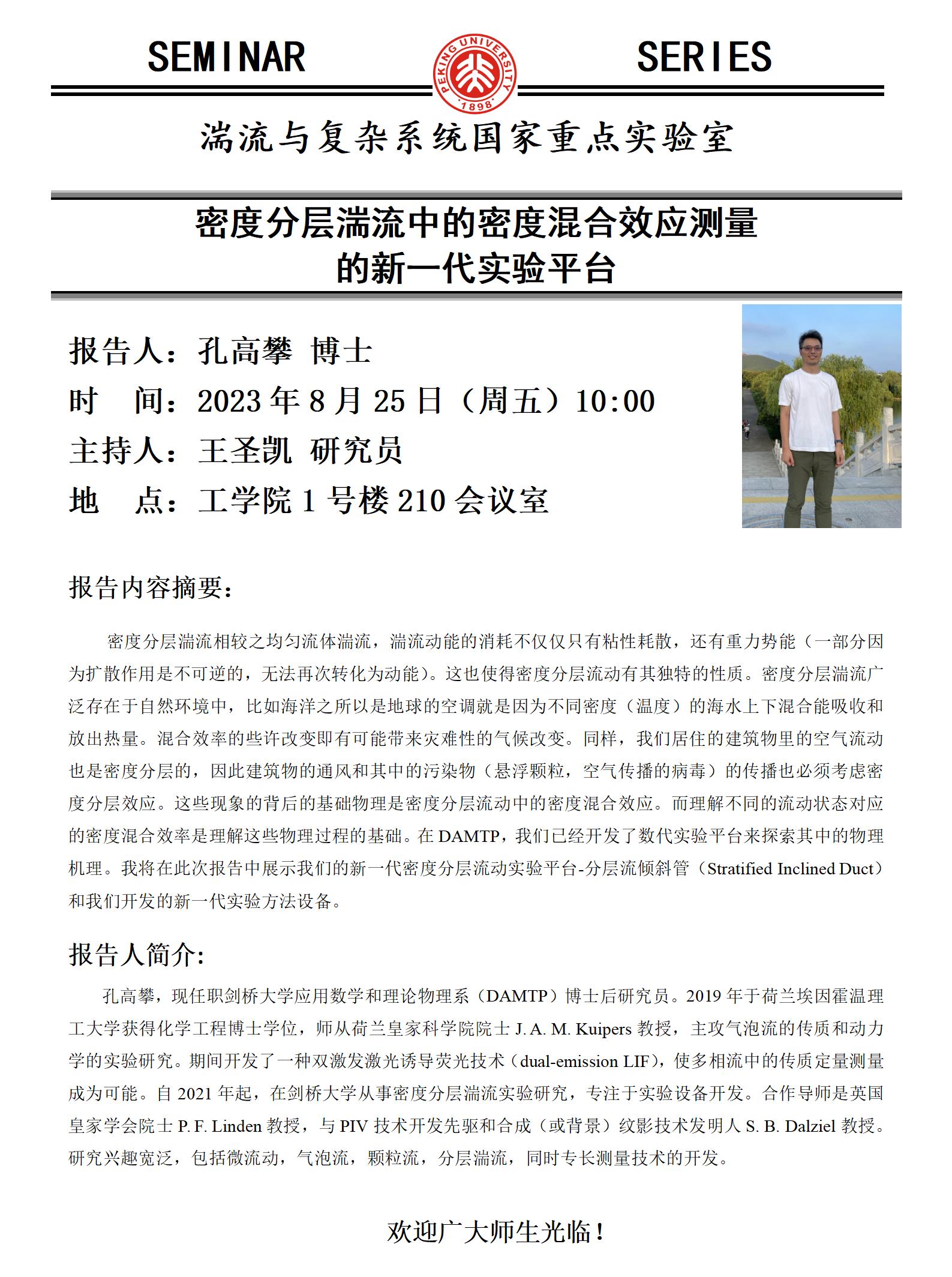 【学术报告】密度分层湍流中的密度混合效应测量的新一代实验平台