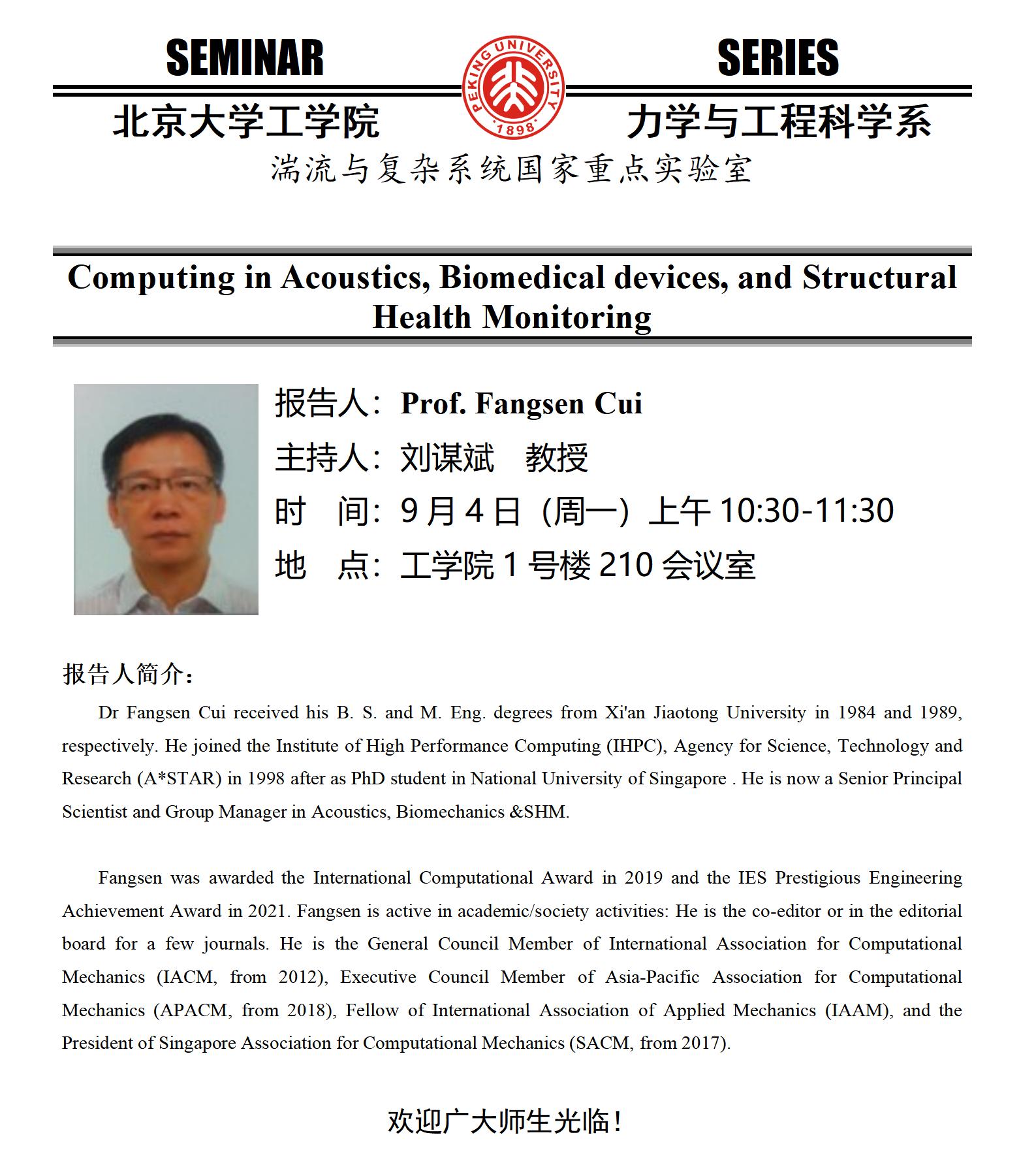 【学术报告】 Computing in Acoustics, Biomedical devices, and Structural Health Monitoring
