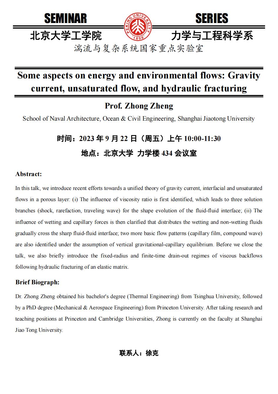 【学术报告】Some aspects on energy and environmental flows: Gravity current, unsaturated flow, and hydraulic fracturing