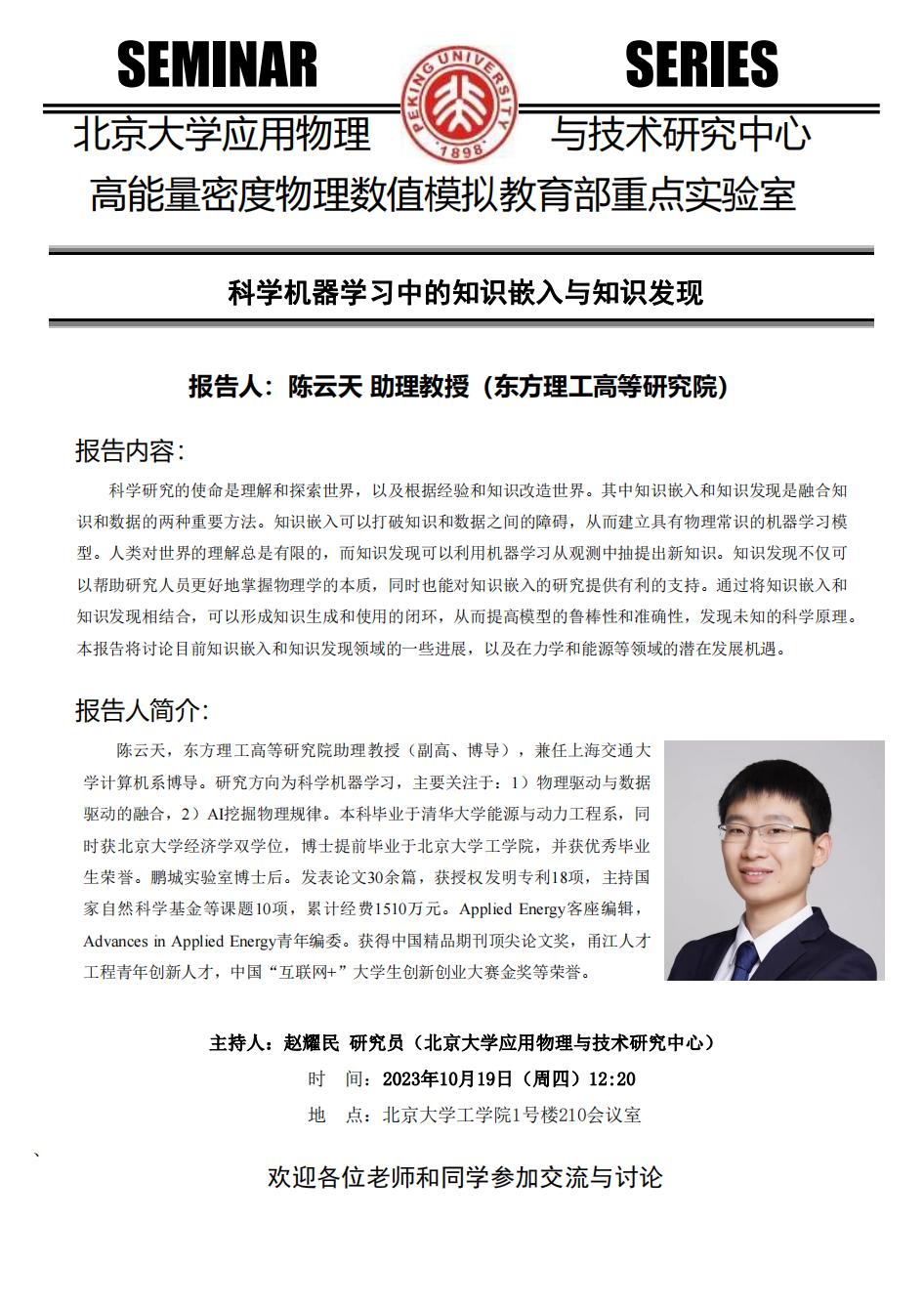 【学术报告】科学机器学习中的知识嵌入与知识发现