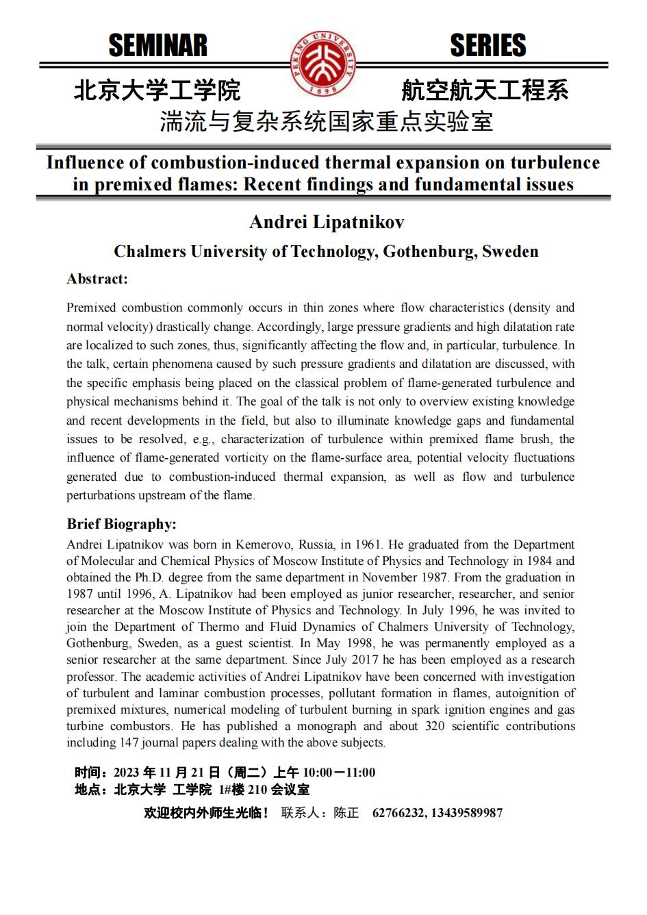 【学术报告】Influence of combustion-induced thermal expansion on turbulence in premixed flames: Recent findings and fundamental issues