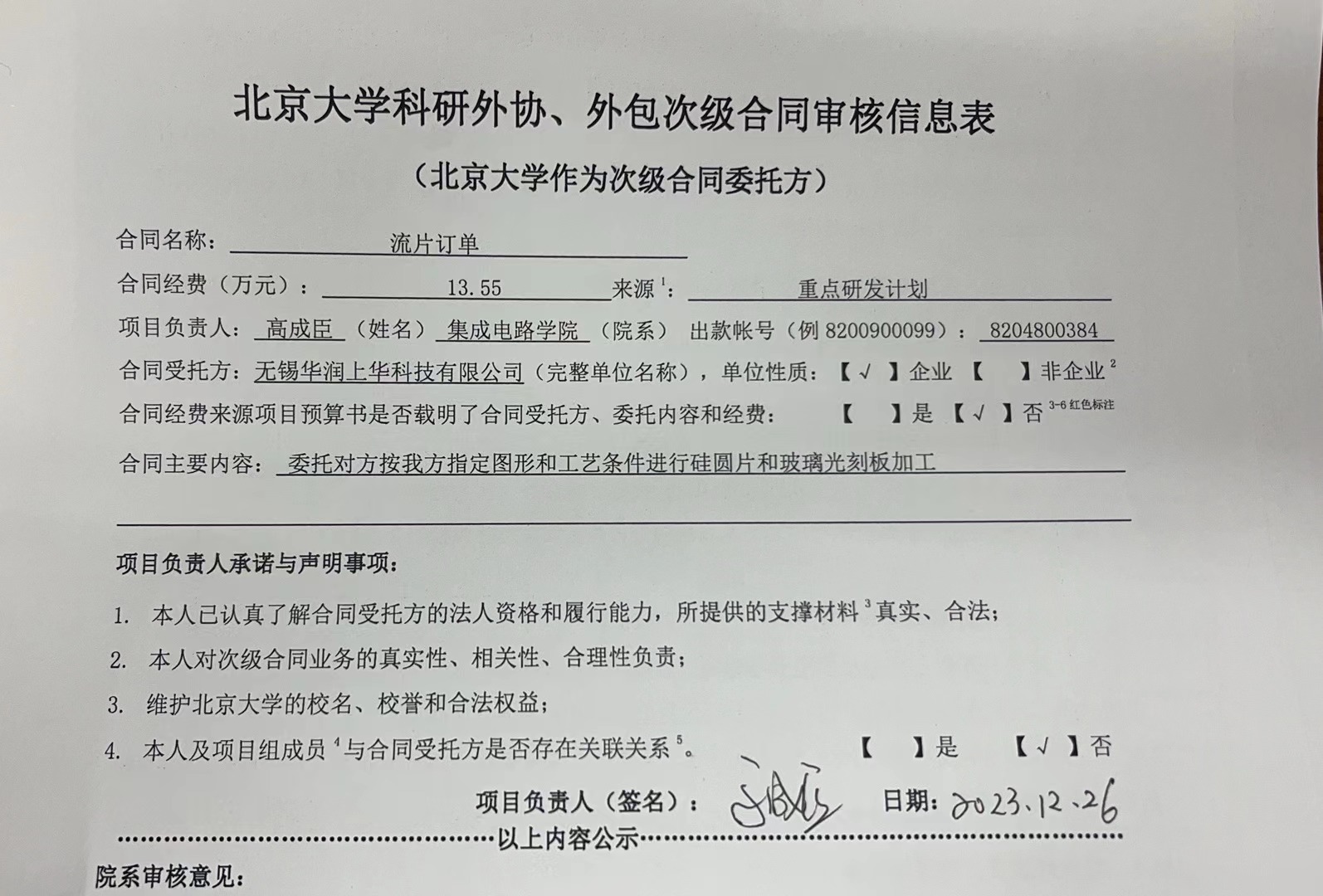 根据《关于北京大学理工科科研次级合同管理的通知》,现将北京大学理工科科研次级合同“流片订单”相关内容予以公示。