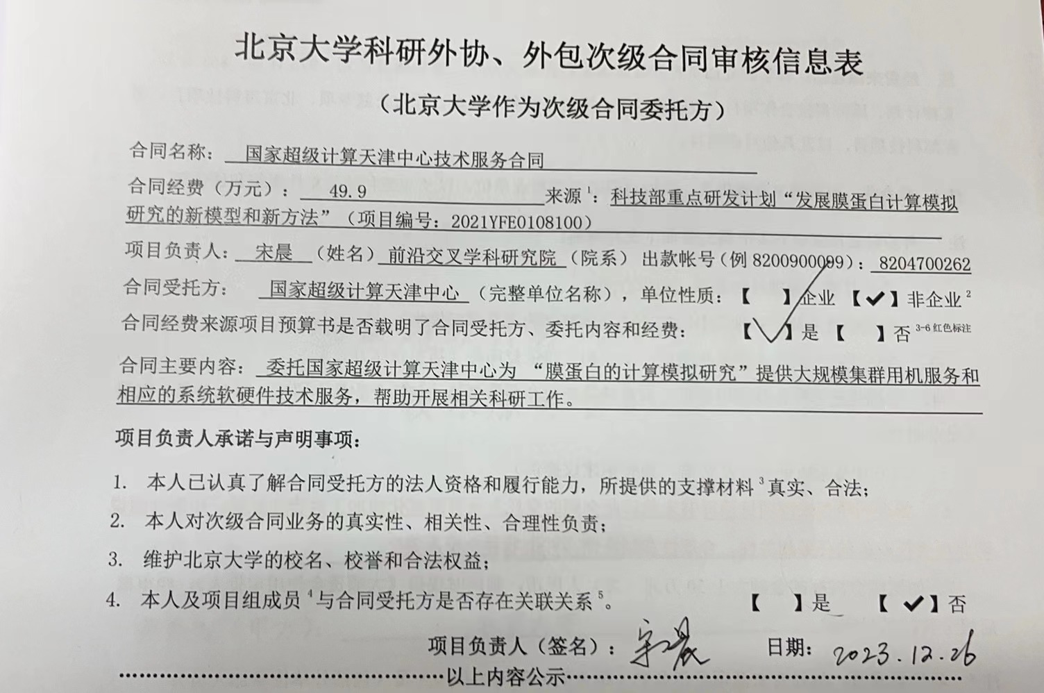 根据《关于北京大学理工科科研次级合同管理的通知》,现将北京大学理工科科研次级合同“国家超级计算天津中心技术服务合同”相关内容予以公示。