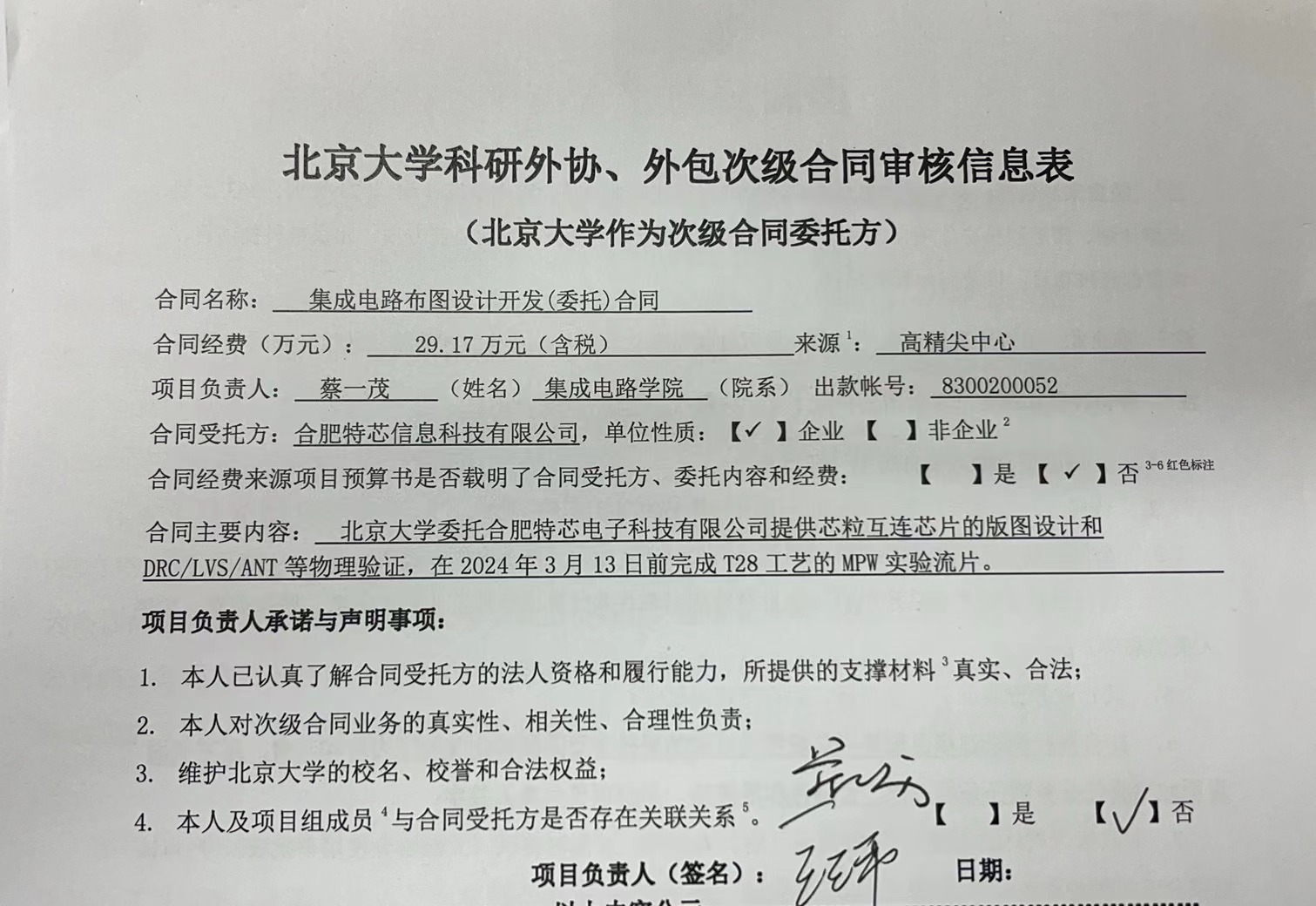 根据《关于北京大学理工科科研次级合同管理的通知》,现将北京大学理工科科研次级合同“集成电路布图设计开发(委托)合同”相关内容予以公示。