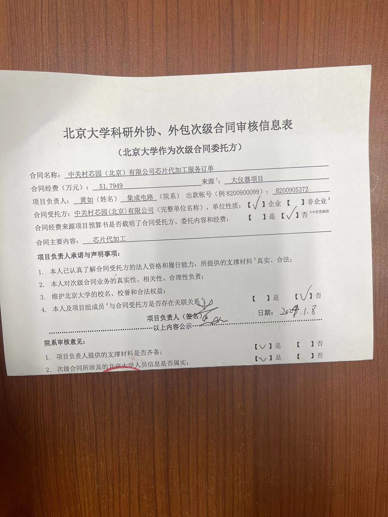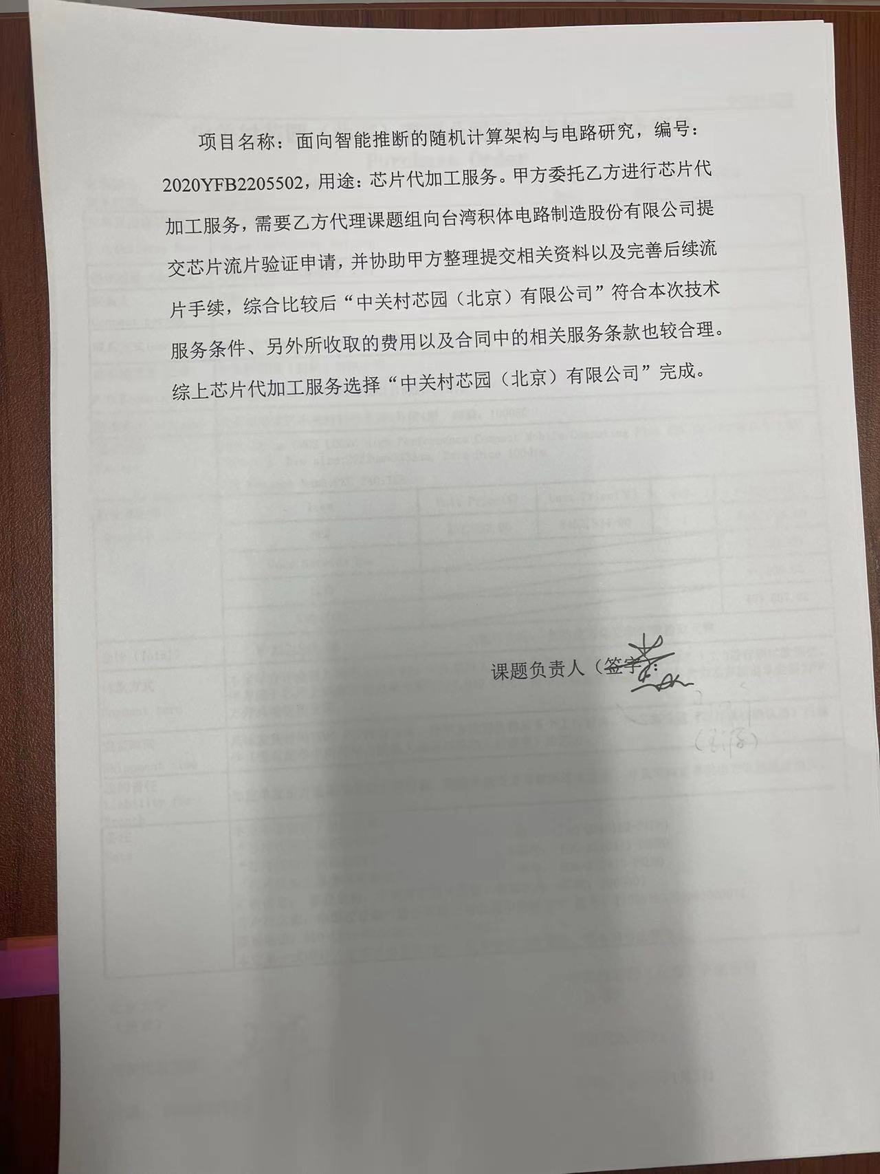 根据《关于北京大学理工科科研次级合同管理的通知》,现将北京大学理工科科研次级合同“中关村芯园(北京)有限公司芯片代加工服务订单”相关内容予以公示。