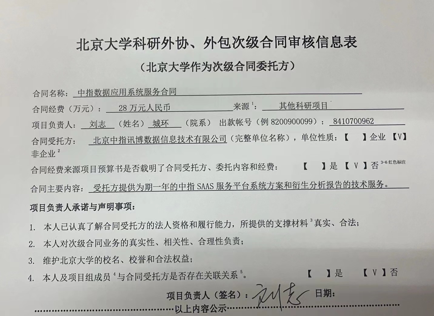 根据《关于北京大学理工科科研次级合同管理的通知》,现将北京大学理工科科研次级合同“中指数据应用系统服务合同”相关内容予以公示。