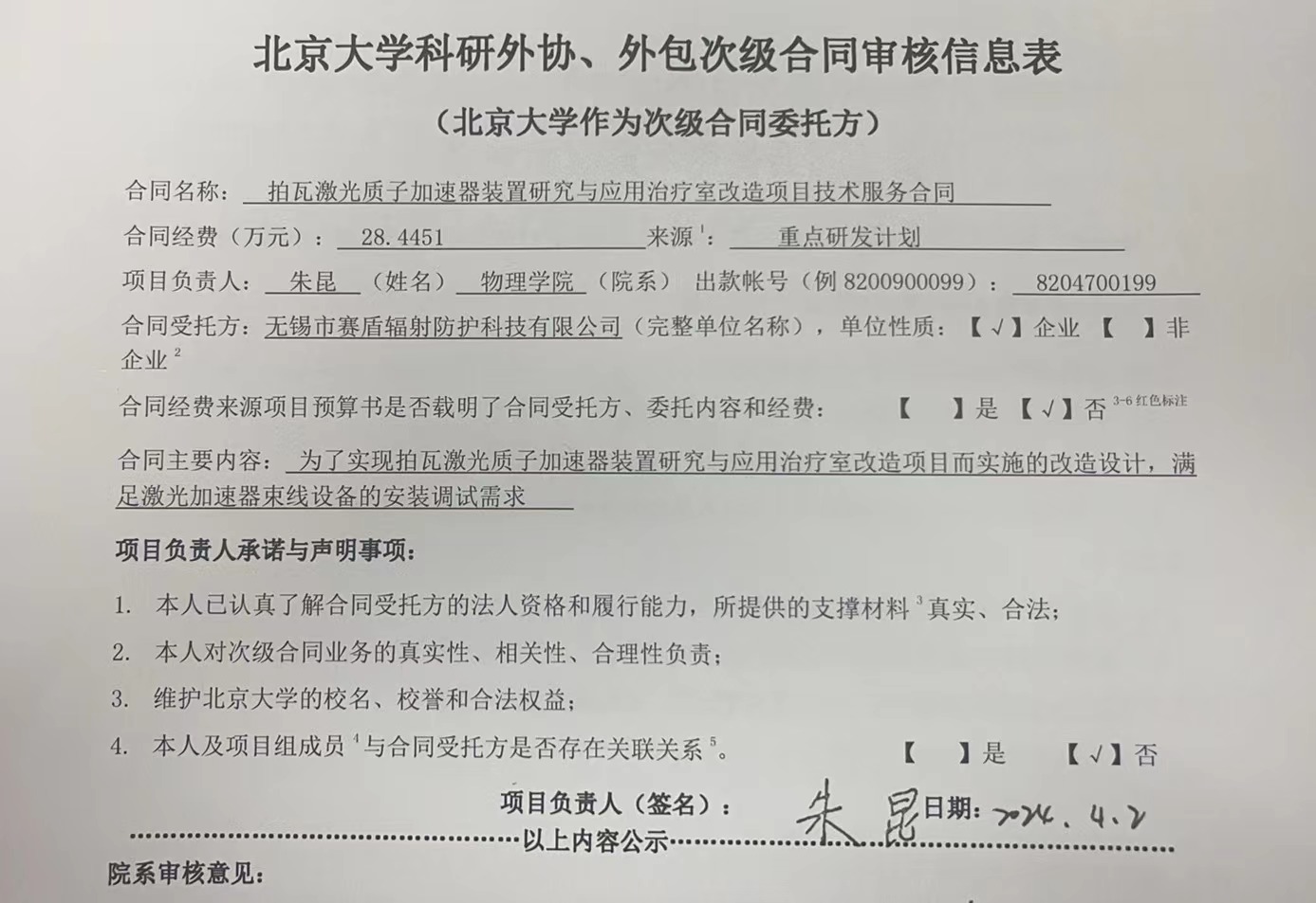 根据《关于北京大学理工科科研次级合同管理的通知》,现将北京大学理工科科研次级合同“拍瓦激光质子加速器装置研究与应用治疗室改造项目技术服务合同”相关内容予以公示。
