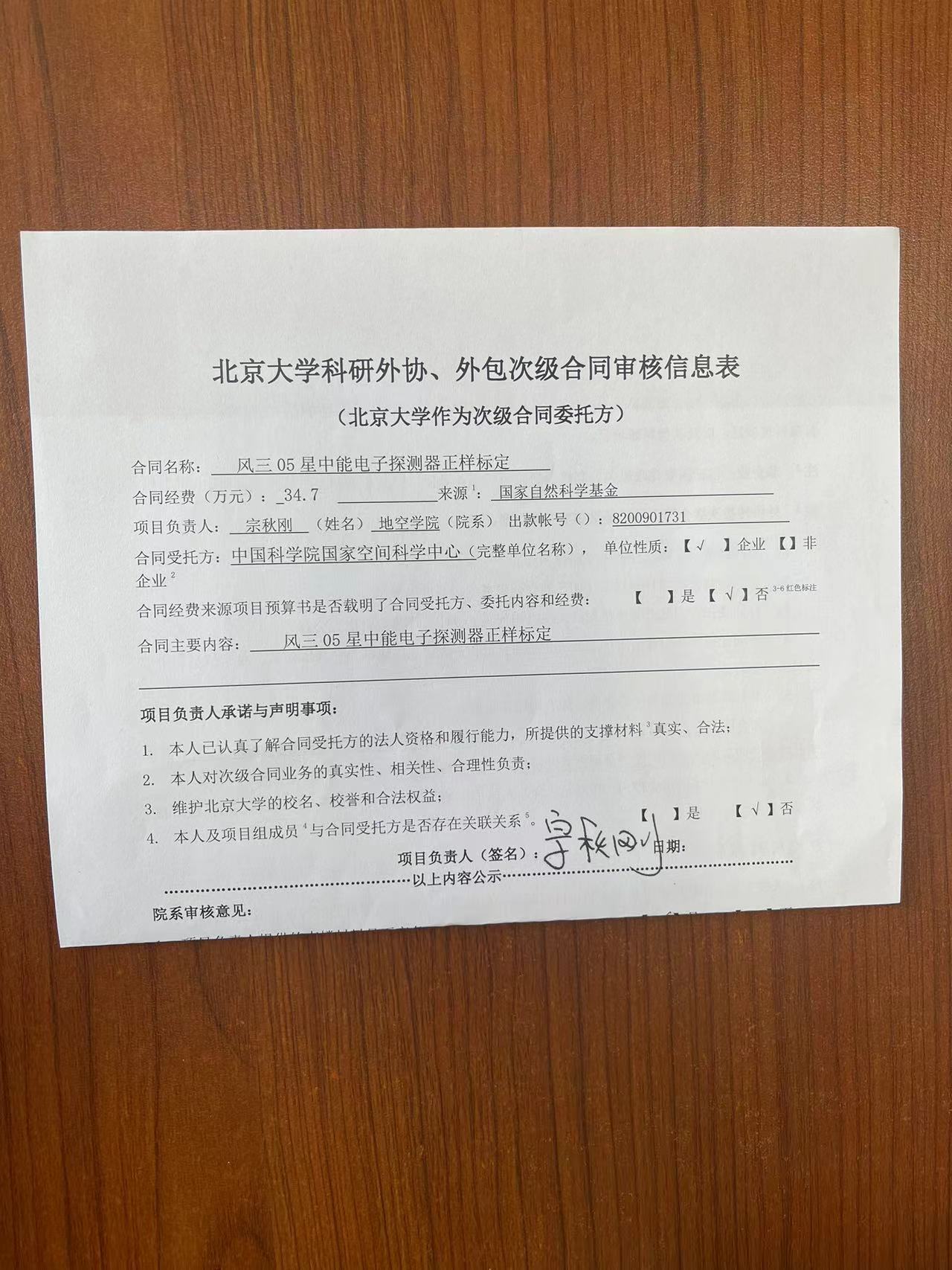 根据《关于北京大学理工科科研次级合同管理的通知》,现将北京大学理工科科研次级合同“风三05星中能电子探测器正样标定”相关内容予以公示。