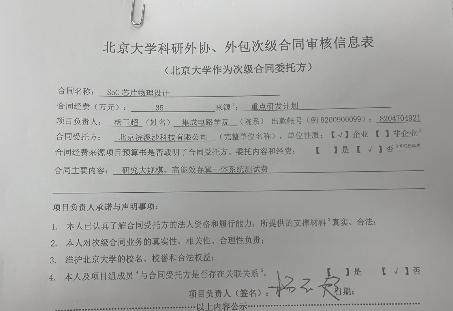 根据《关于北京大学理工科科研次级合同管理的通知》,现将北京大学理工科科研次级合同“SoC 芯片物理设计”相关内容予以公示。