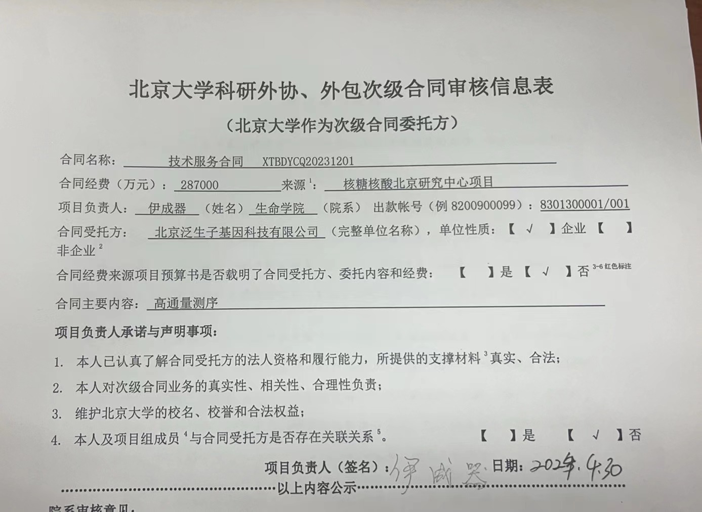 根据《关于北京大学理工科科研次级合同管理的通知》,现将北京大学理工科科研次级合同“技术服务合同XTBDYCQ20231201”相关内容予以公示。