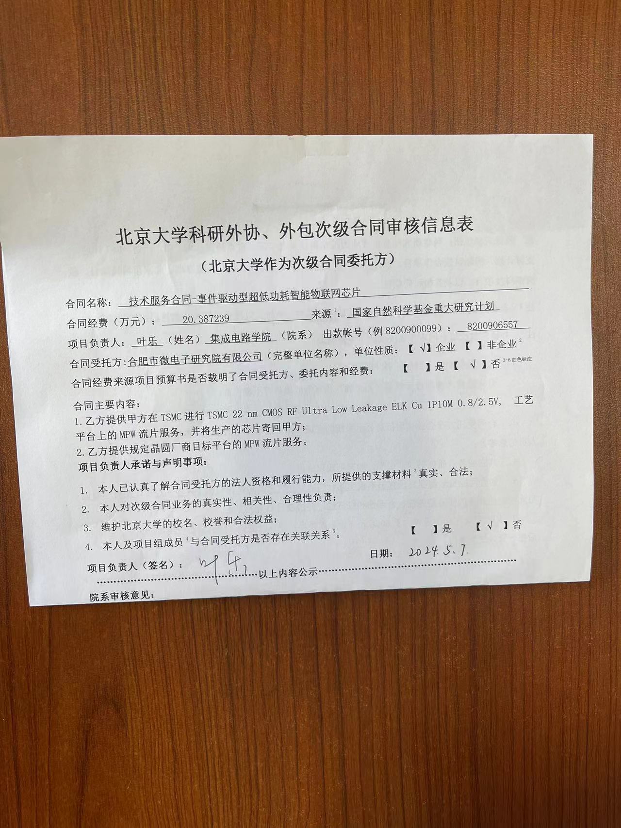 根据《关于北京大学理工科科研次级合同管理的通知》,现将北京大学理工科科研次级合同“件驱动型超低功耗智能物联网芯片”相关内容予以公示。