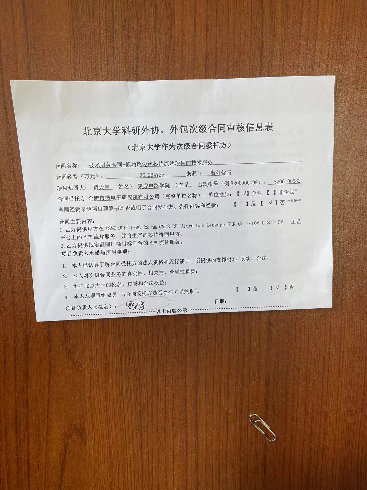 根据《关于北京大学理工科科研次级合同管理的通知》,现将北京大学理工科科研次级合同“低功耗边缘芯片流片项目的技术服务”相关内容予以公示。