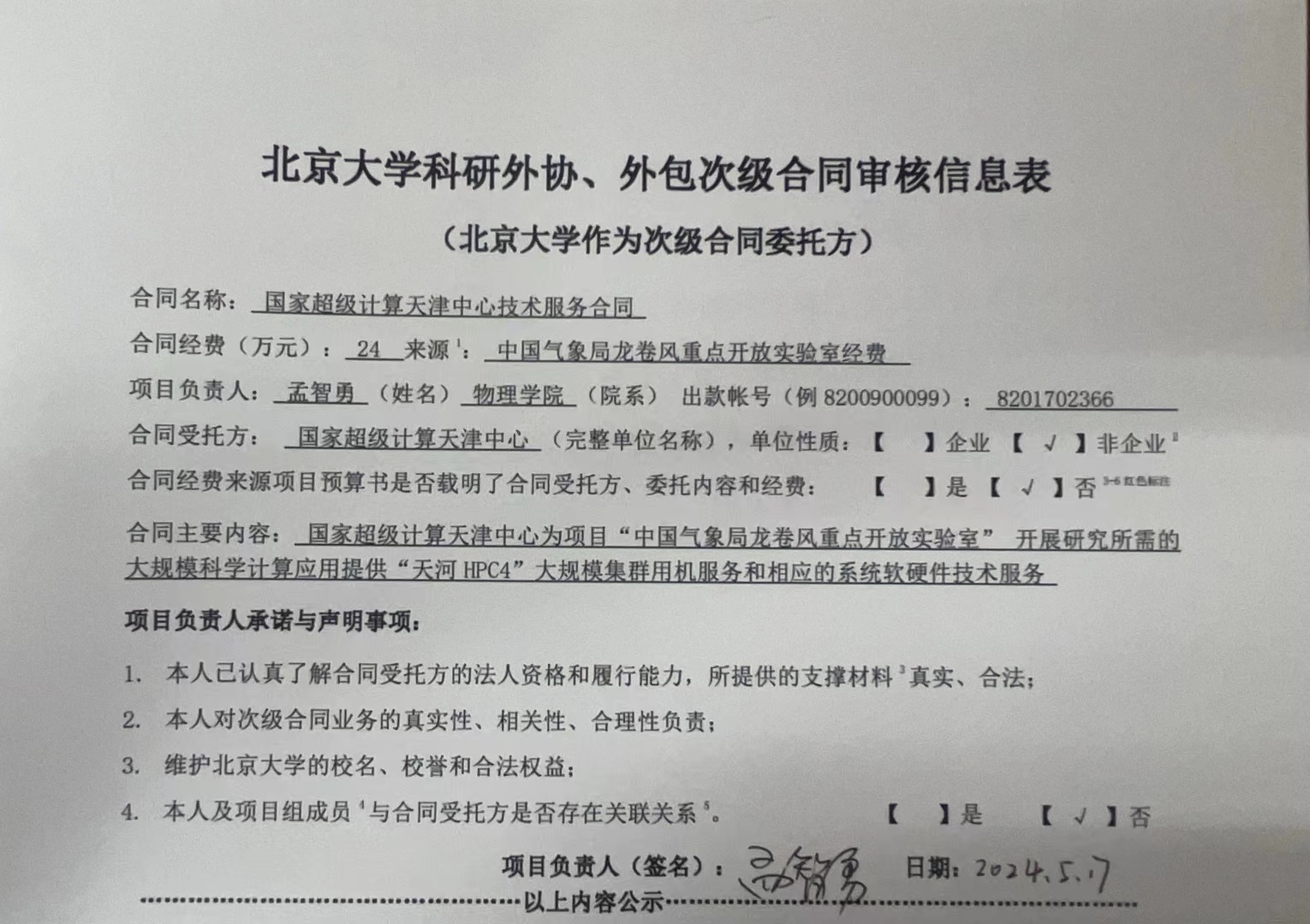 根据《关于北京大学理工科科研次级合同管理的通知》,现将北京大学理工科科研次级合同“国家超级计算天津中心技术服务合同”相关内容予以公示。