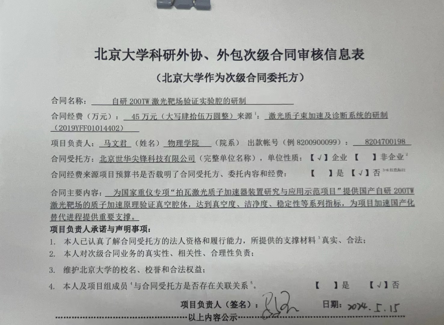 根据《关于北京大学理工科科研次级合同管理的通知》,现将北京大学理工科科研次级合同“自研 200TW 激光靶场验证实验腔的研制”相关内容予以公示。
