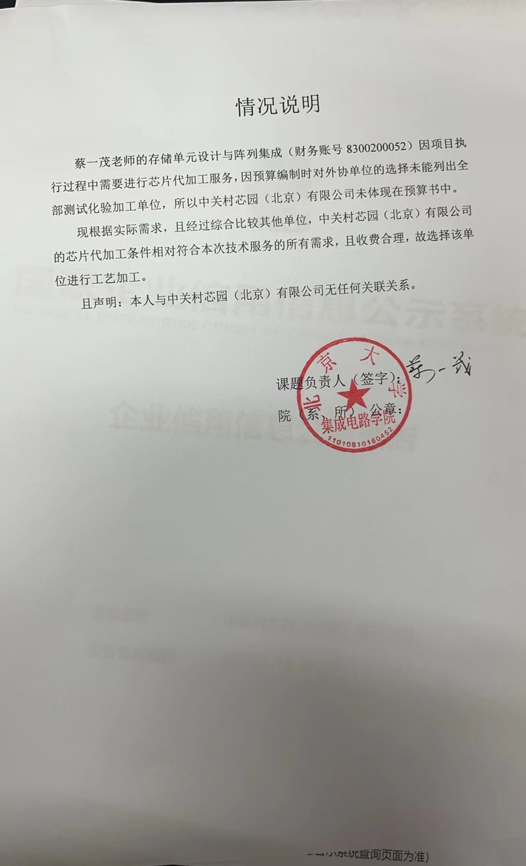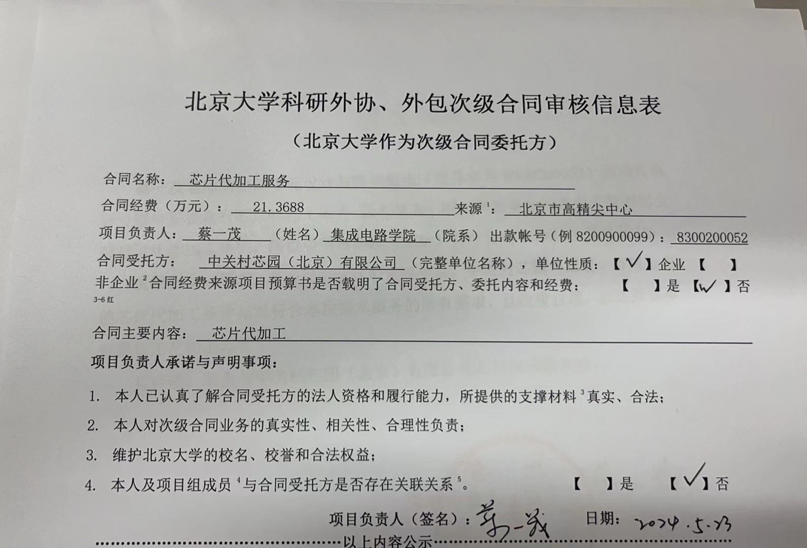 根据《关于北京大学理工科科研次级合同管理的通知》,现将北京大学理工科科研次级合同“芯片代加工服务”相关内容予以公示。