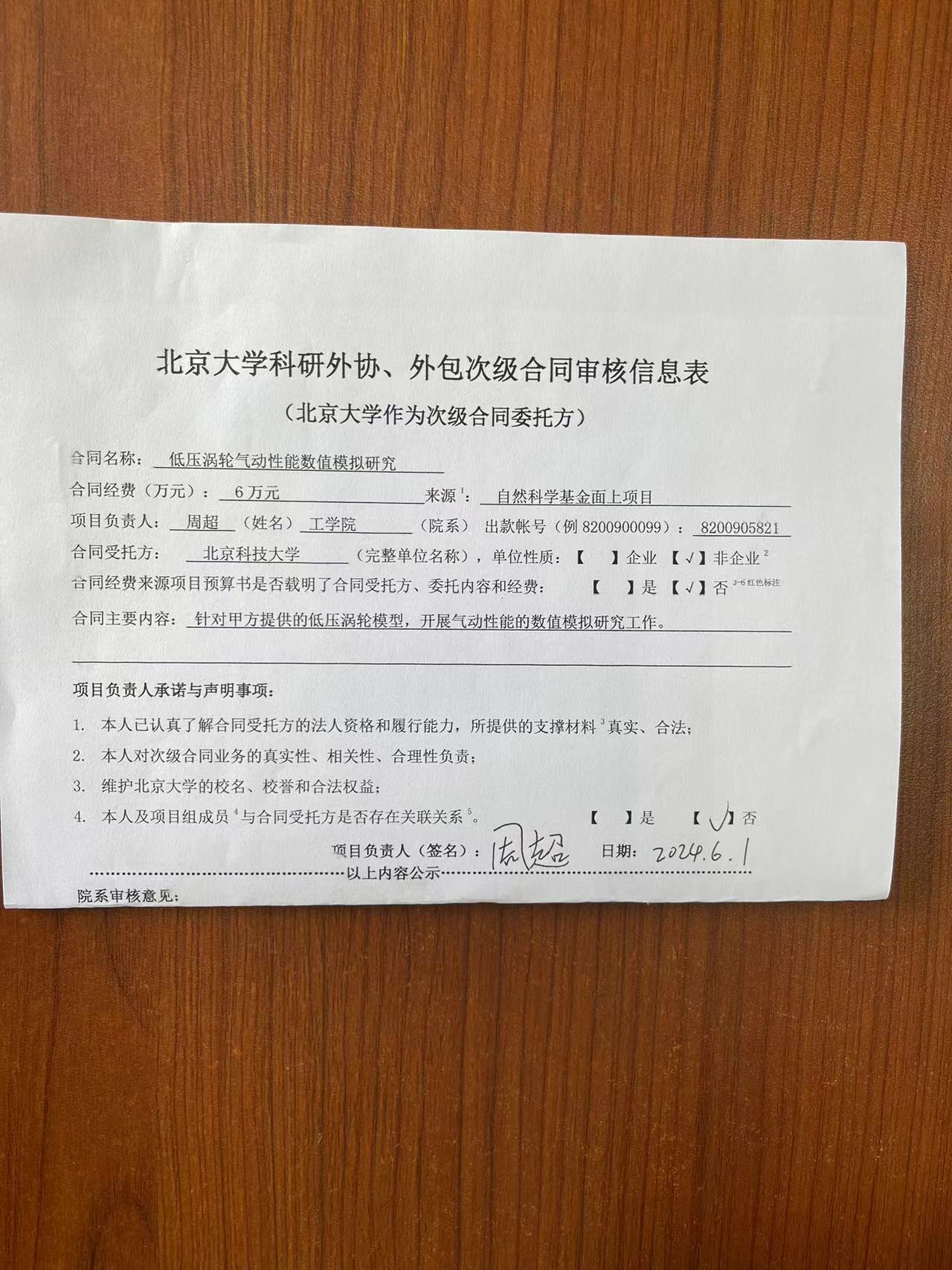 根据《关于北京大学理工科科研次级合同管理的通知》,现将北京大学理工科科研次级合同“低压涡轮汽动性能数值模拟研究”相关内容予以公示。