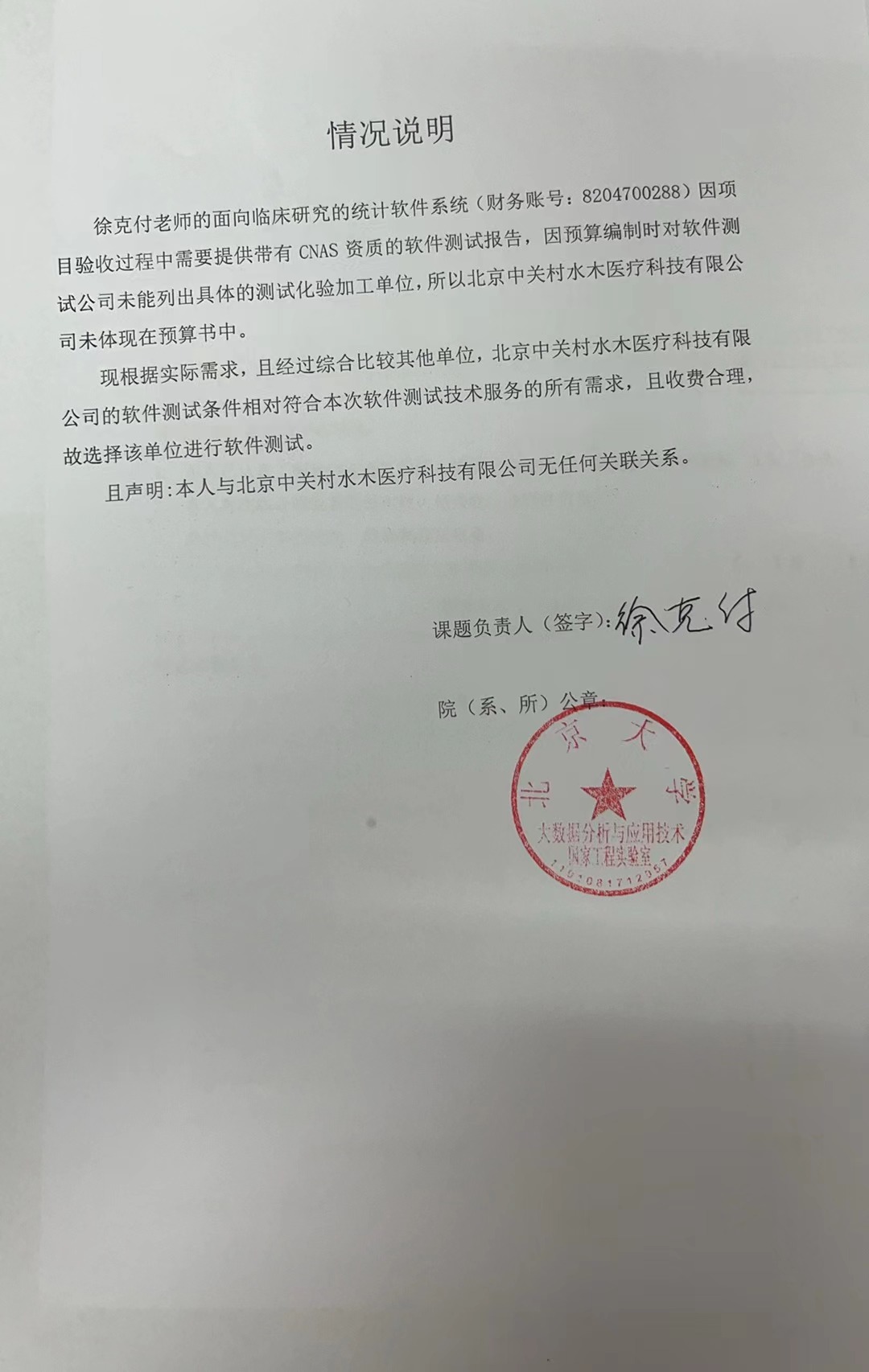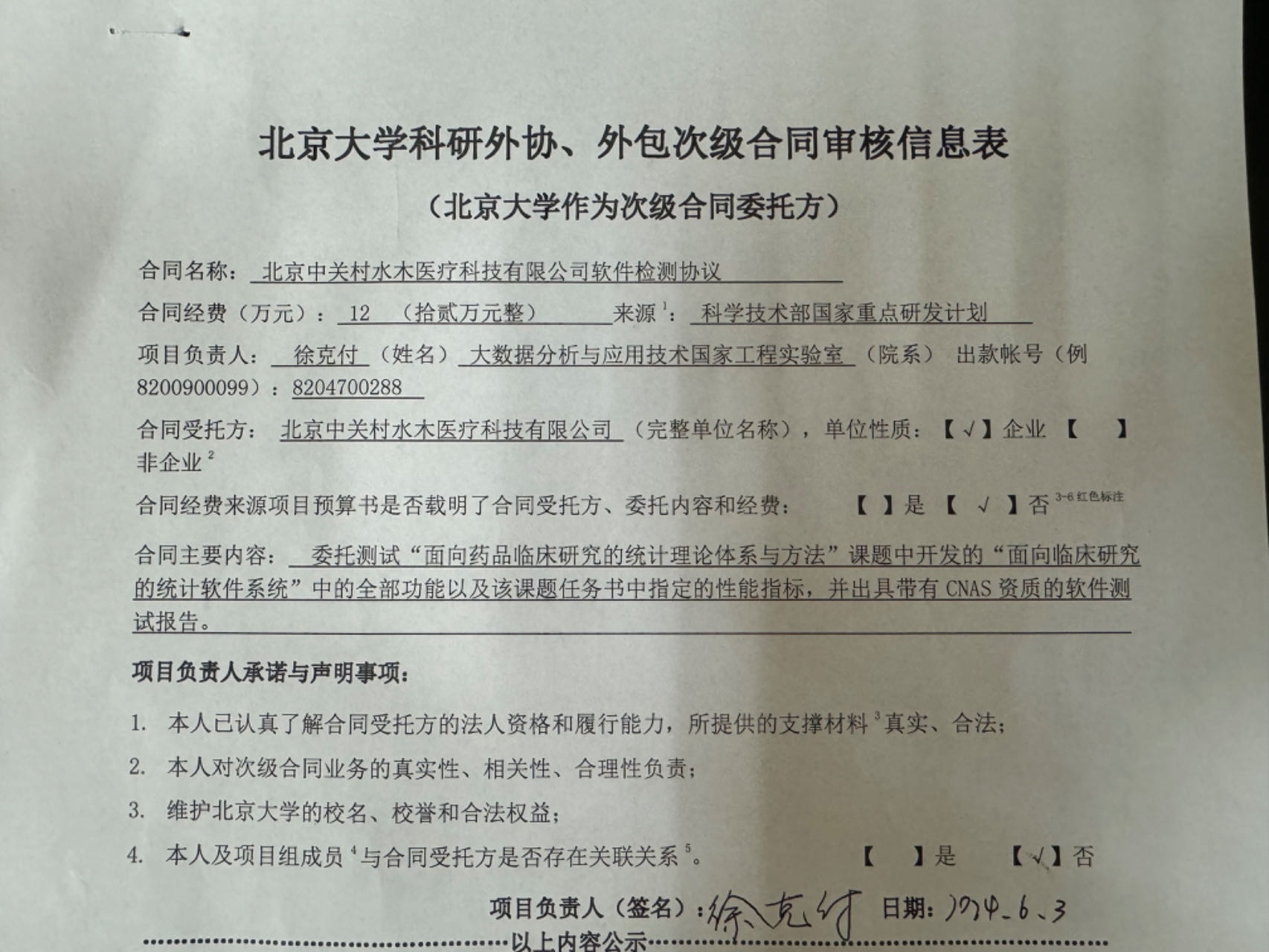根据《关于北京大学理工科科研次级合同管理的通知》,现将北京大学理工科科研次级合同“北京中关村水木医疗科技有限公司软件检测协议”相关内容予以公示。