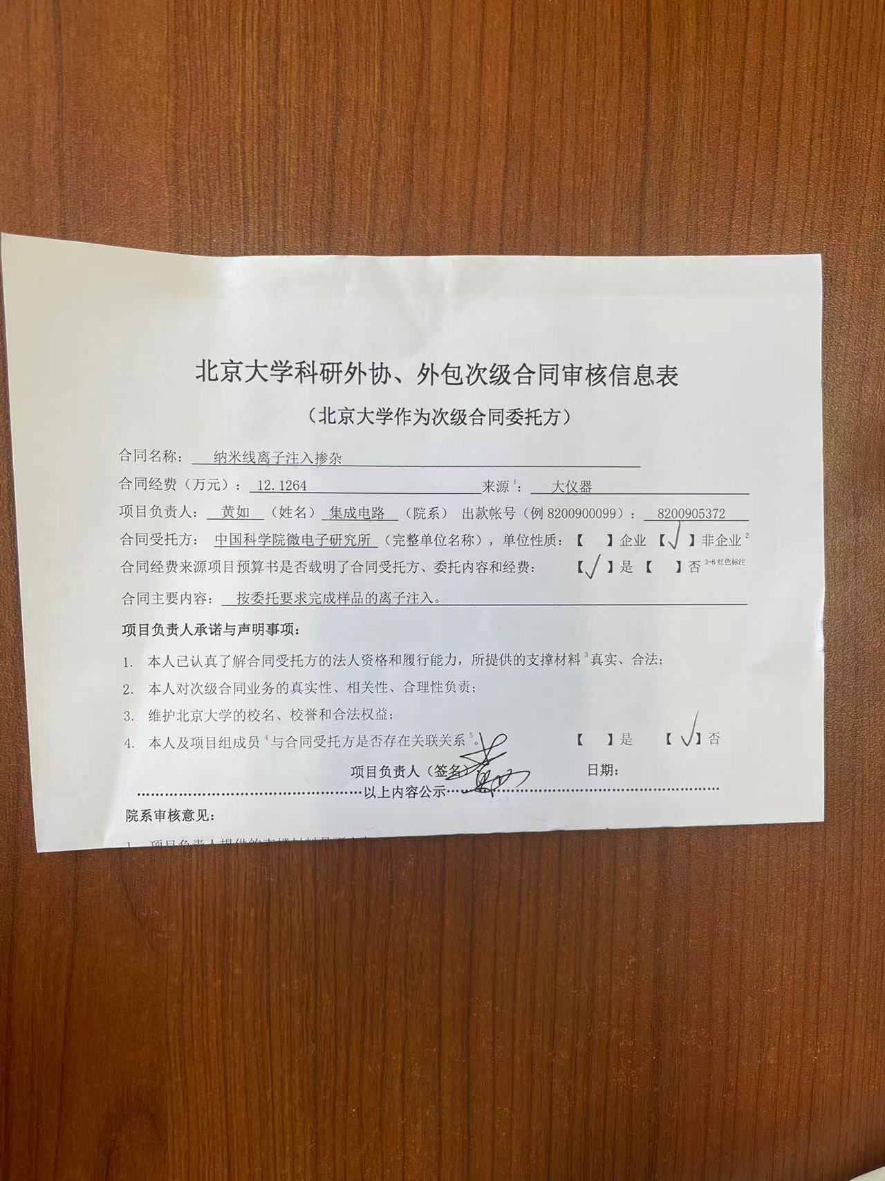 根据《关于北京大学理工科科研次级合同管理的通知》,现将北京大学理工科科研次级合同“纳米线离子注入掺杂”相关内容予以公示。