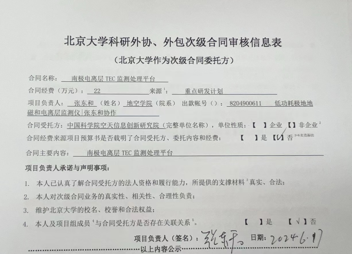 根据《关于北京大学理工科科研次级合同管理的通知》,现将北京大学理工科科研次级合同“南极电离层TEC监测处理平台”相关内容予以公示。