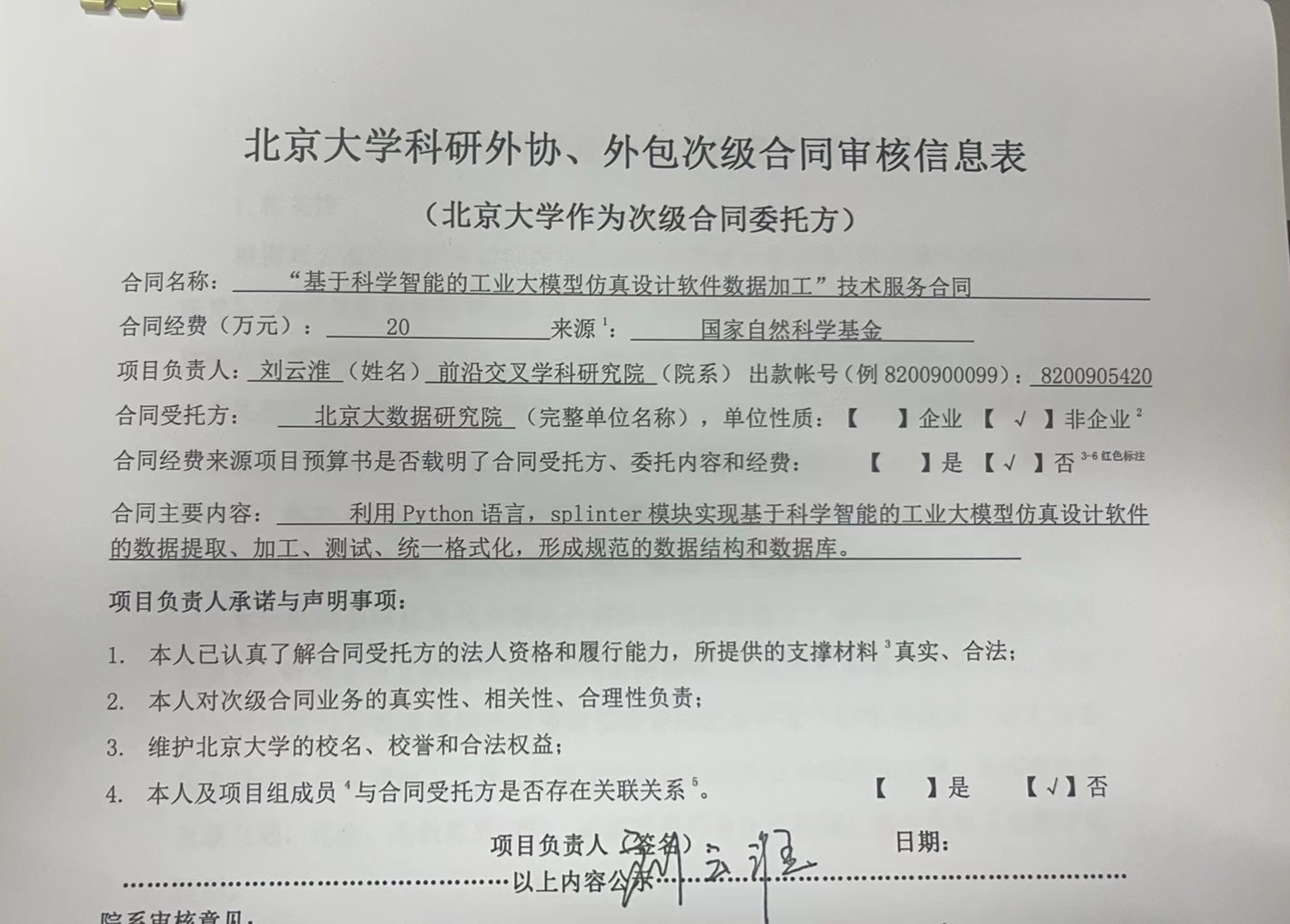 根据《关于北京大学理工科科研次级合同管理的通知》,现将北京大学理工科科研次级合同“‘基于科学智能的工业大模型仿真设计软件数据加工’技术服务合同”相关内容予以公示。