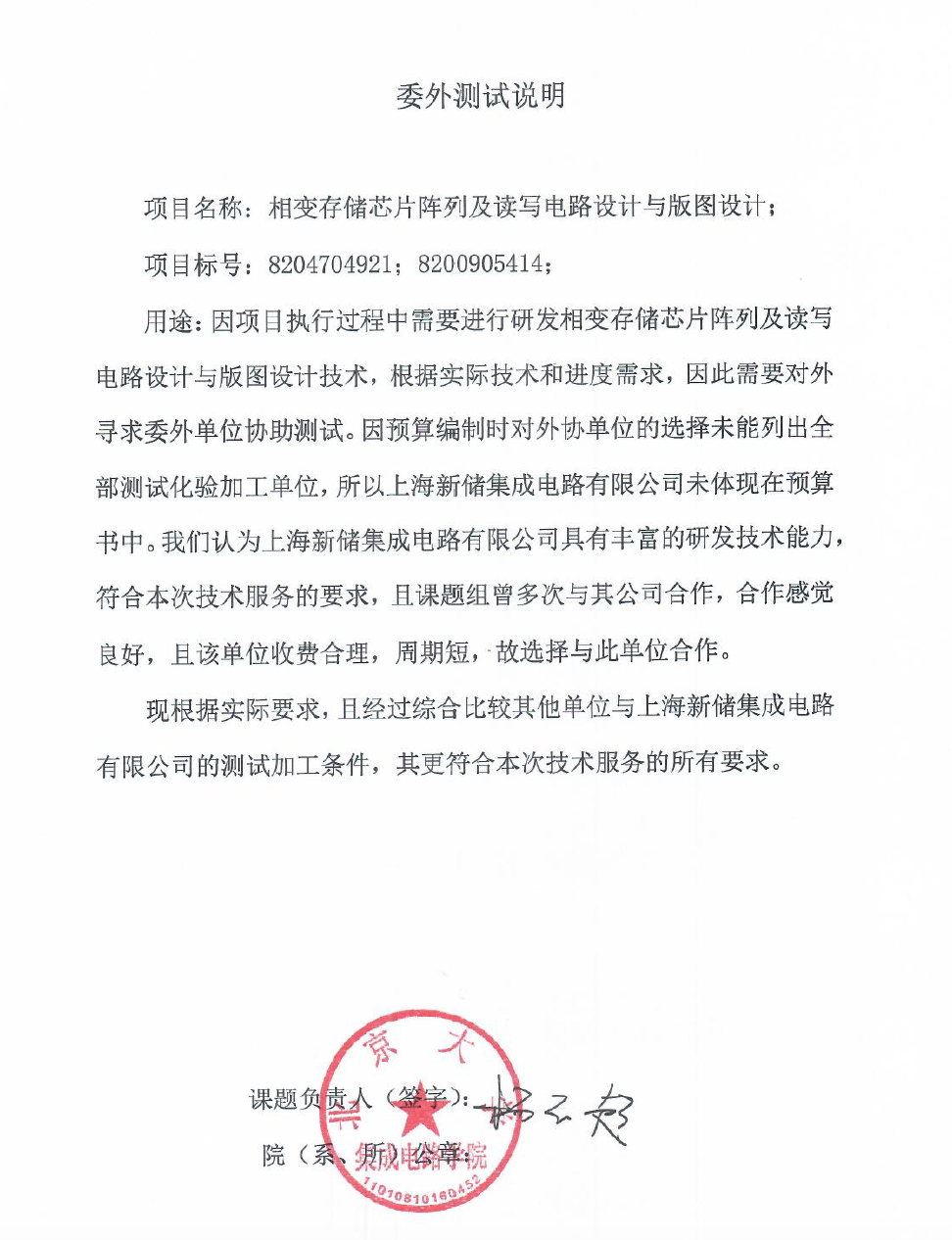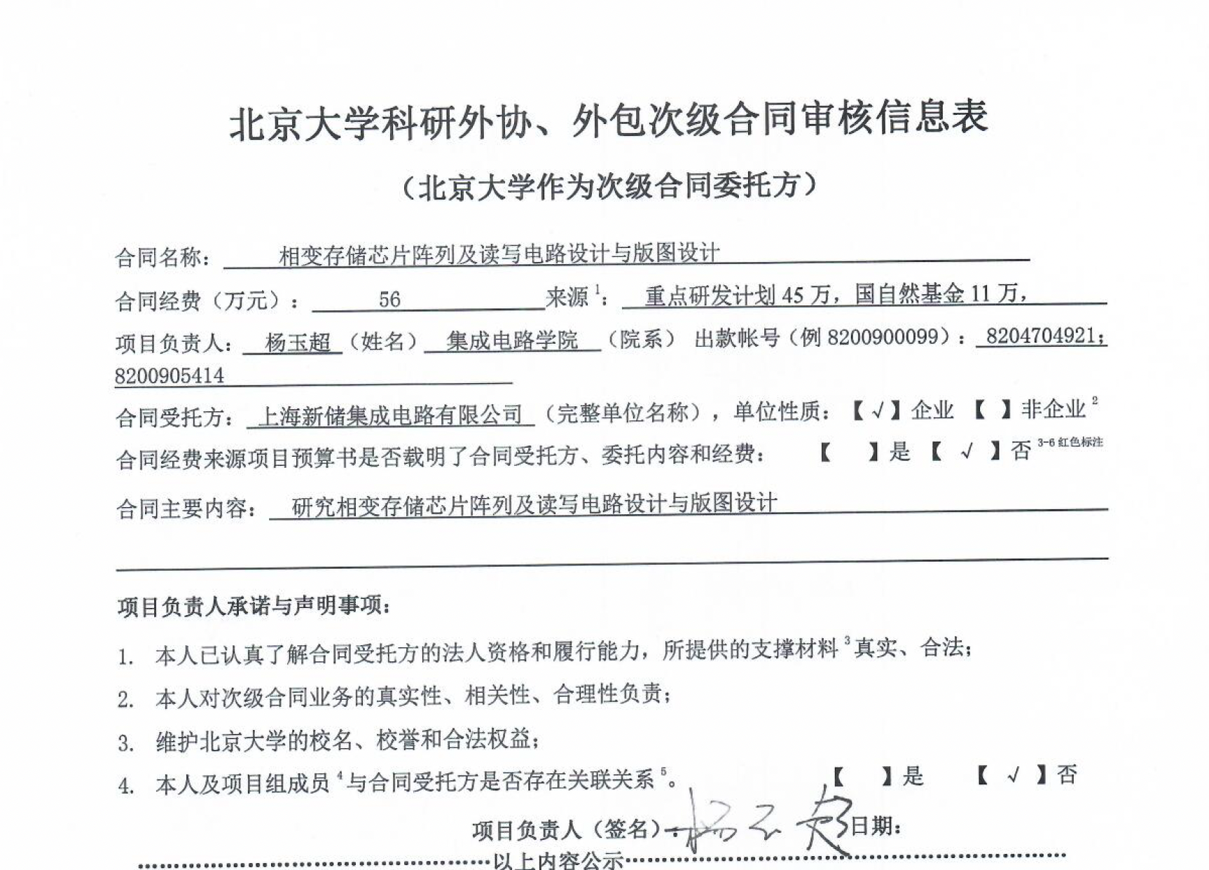根据《关于北京大学理工科科研次级合同管理的通知》,现将北京大学理工科科研次级合同“相变存储芯片阵列及读写电路设计与版图设计”相关内容予以公示。
