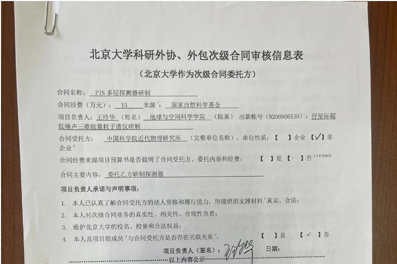根据《关于北京大学理工科科研次级合同管理的通知》,现将北京大学理工科科研次级合同“PIN多层探测器研制”相关内容予以公示。