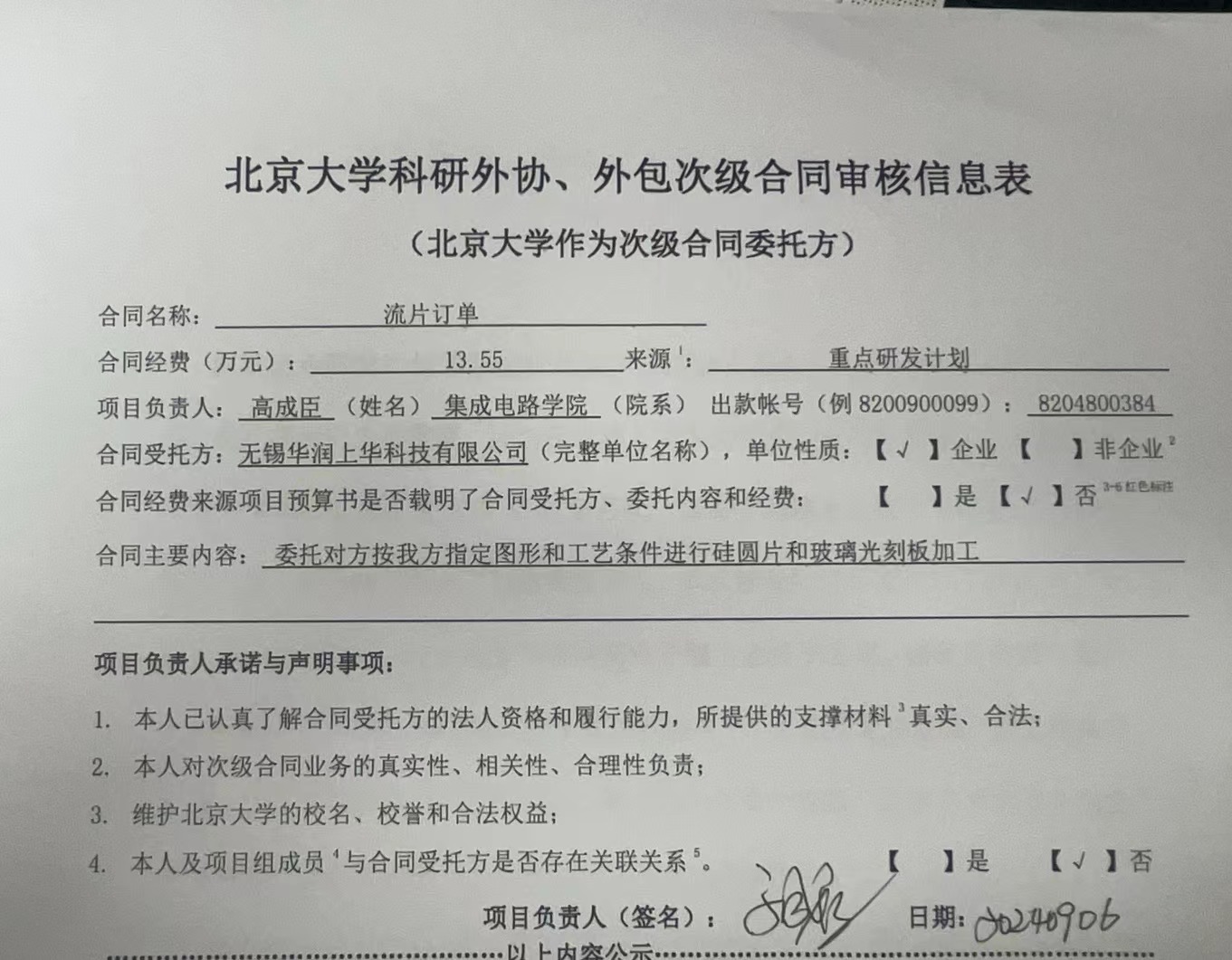 根据《关于北京大学理工科科研次级合同管理的通知》,现将北京大学理工科科研次级合同“流片订单”相关内容予以公示。