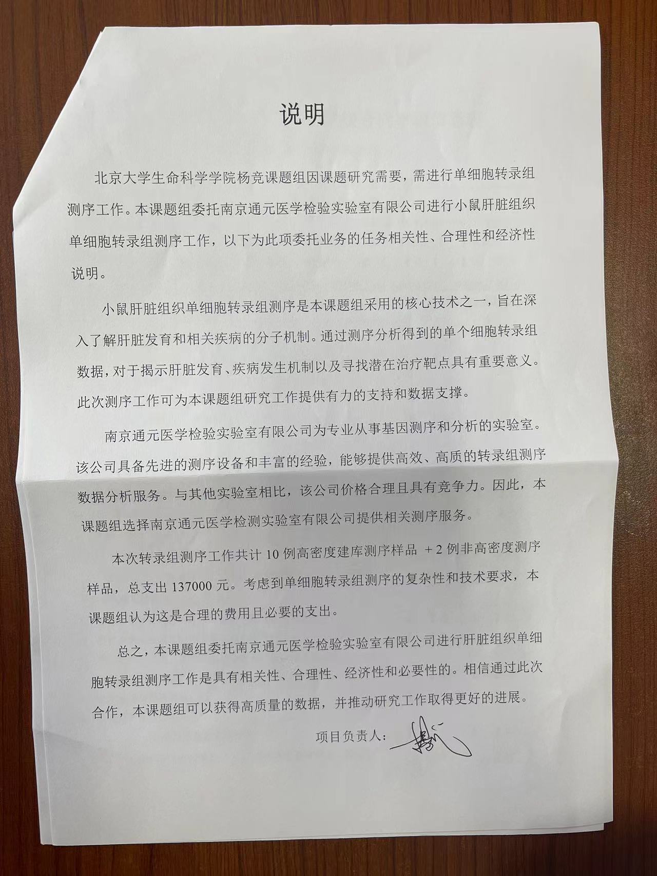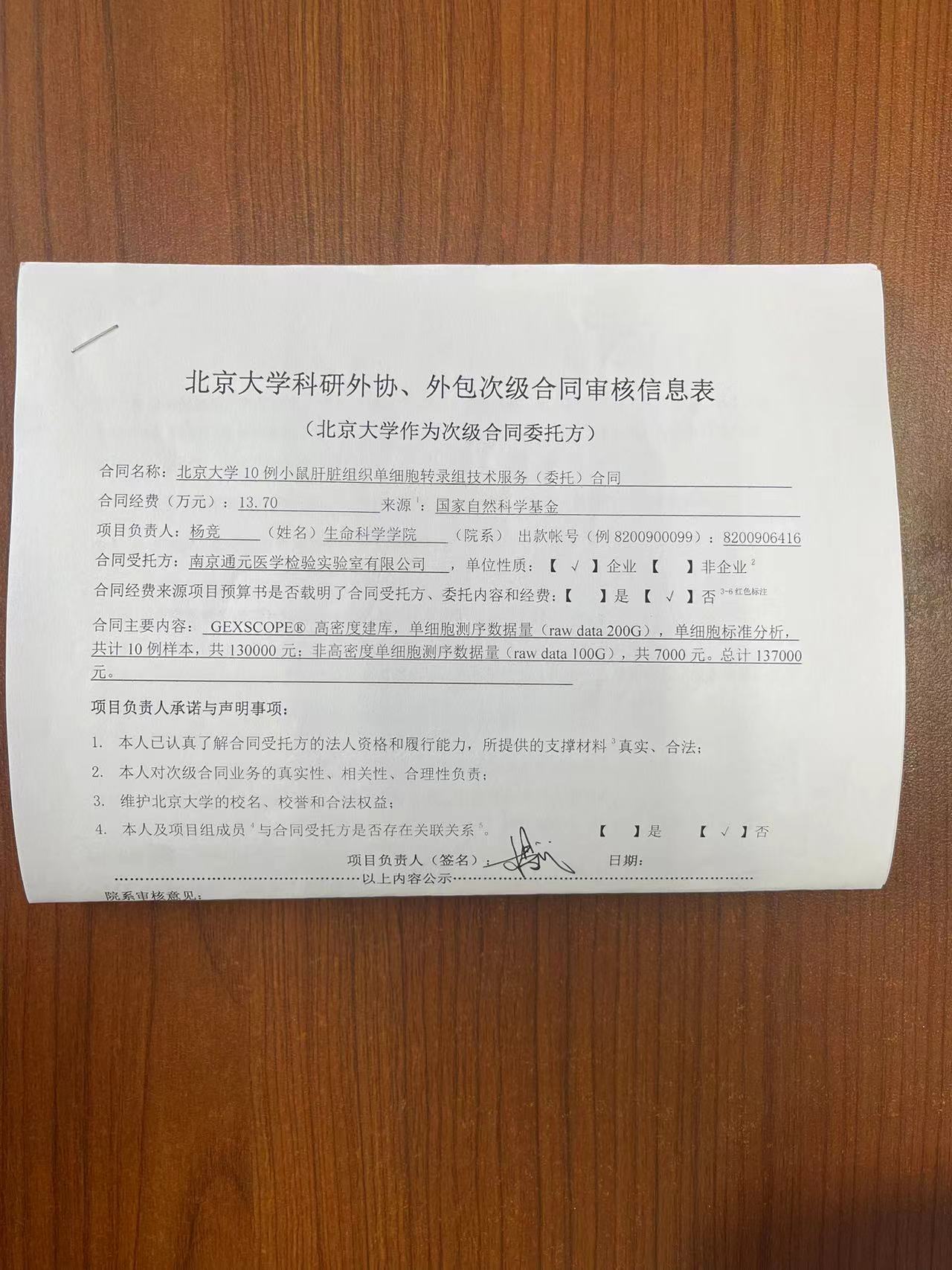 根据《关于北京大学理工科科研次级合同管理的通知》,现将北京大学理工科科研次级合同“10例小鼠肝脏组织单细胞转录组技术服务”相关内容予以公示。