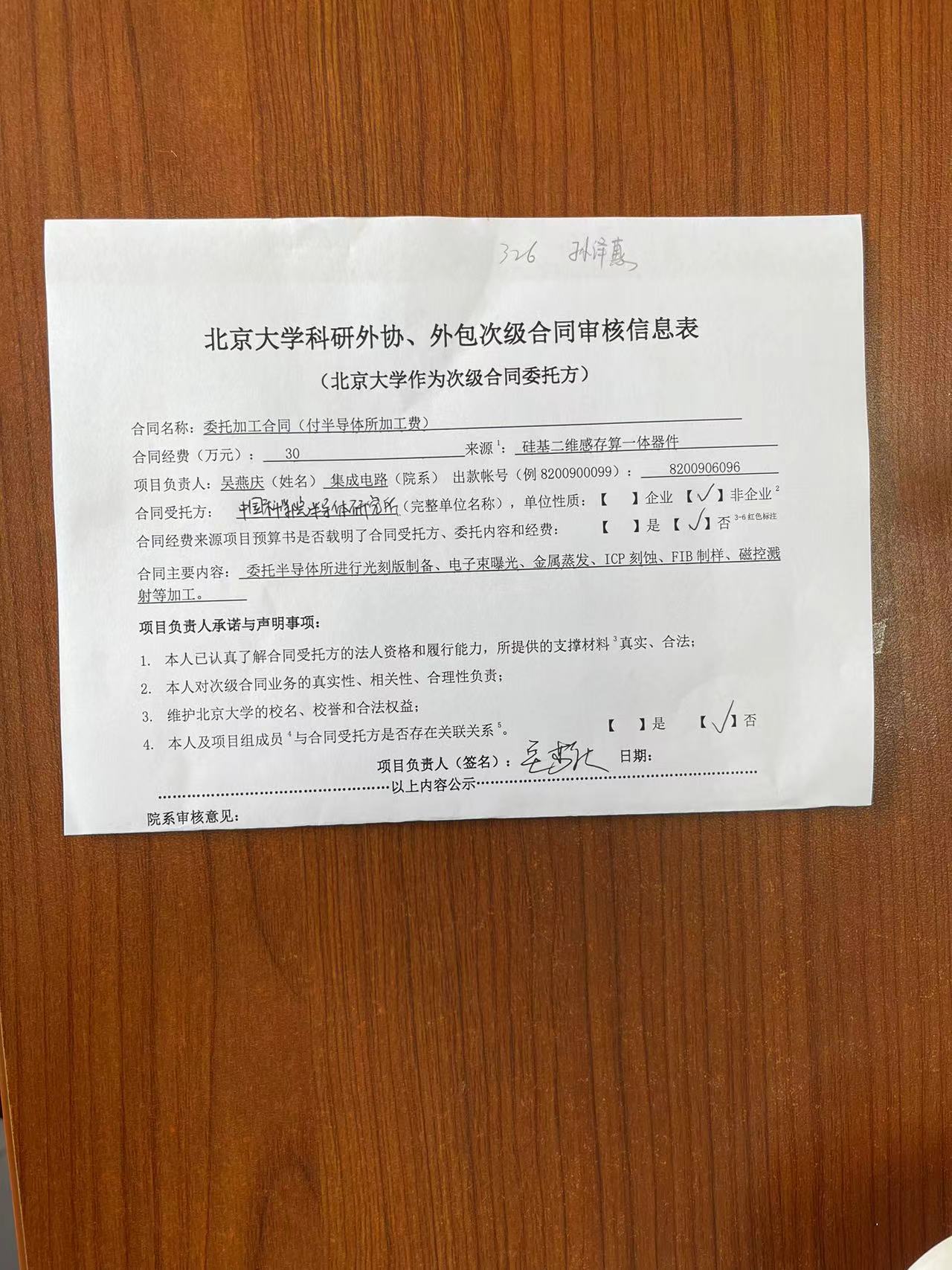 根据《关于北京大学理工科科研次级合同管理的通知》,现将北京大学理工科科研次级合同“委托加工合同(付半导体所加工费)”相关内容予以公示。