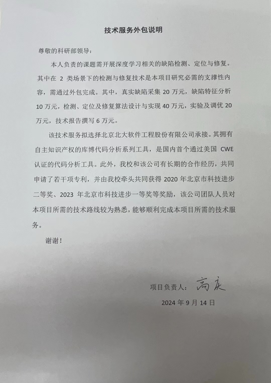 根据《关于北京大学理工科科研次级合同管理的通知》,现将北京大学理工科科研次级合同“技术服务合同”相关内容予以公示。
