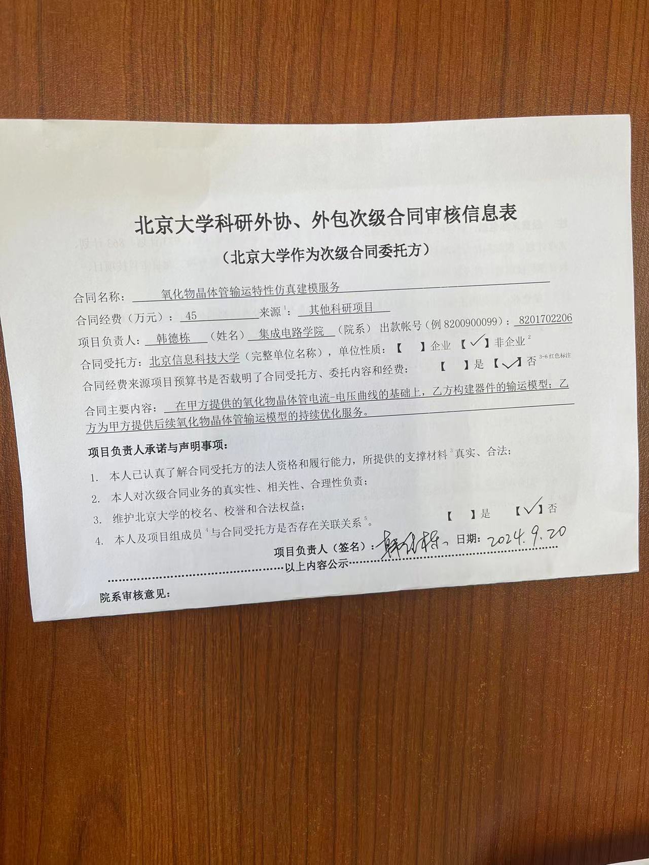 根据《关于北京大学理工科科研次级合同管理的通知》,现将北京大学理工科科研次级合同“氧化物晶体管输运特性仿真建模服务”相关内容予以公示。