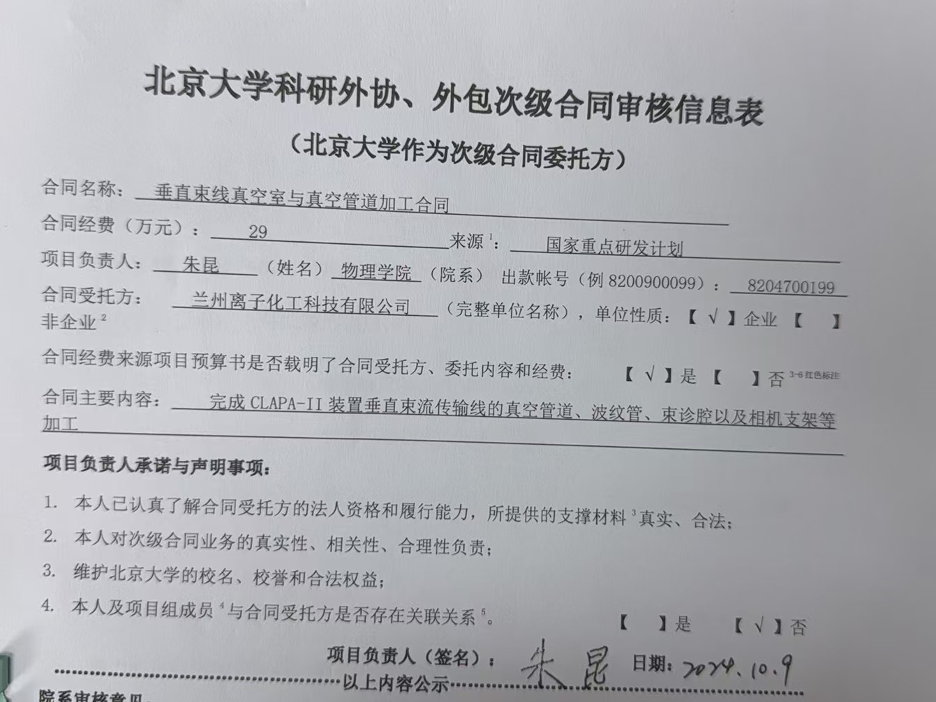 根据《关于北京大学理工科科研次级合同管理的通知》,现将北京大学理工科科研次级合同“垂直束线真空室与真空管道加工合同”相关内容予以公示。