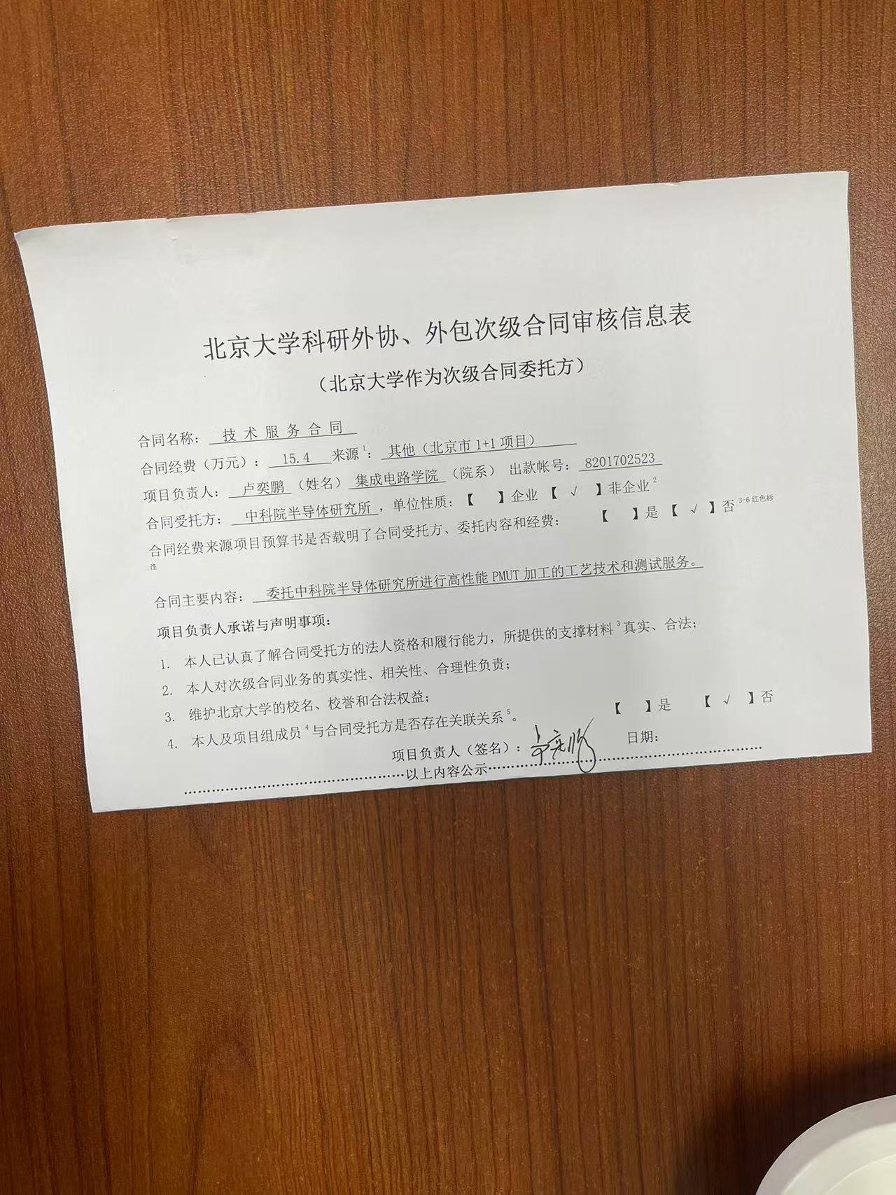 北京大学理工科科研次级合同“技术服务合同 ”公示