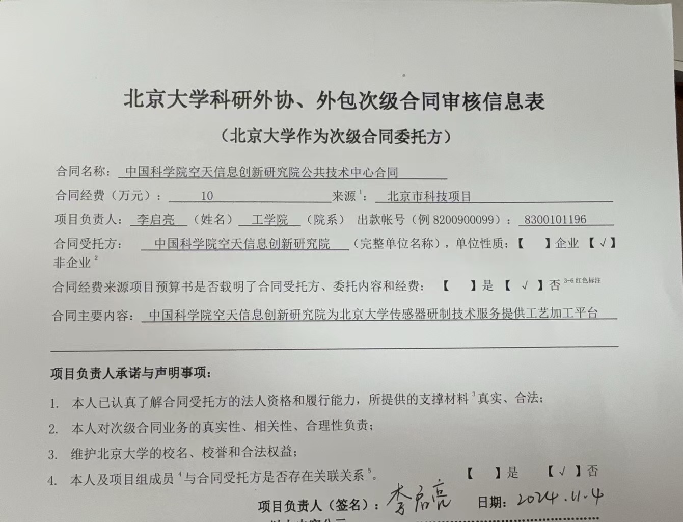 根据《关于北京大学理工科科研次级合同管理的通知》,现将北京大学理工科科研次级合同“中国科学院空天信息创新研究院公共技术中心合同”相关内容予以公示。